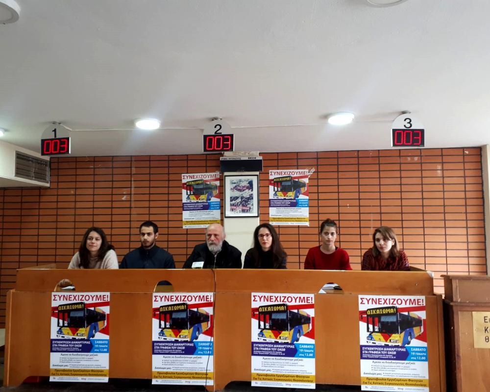 Το μεσημέρι έλαβε χώρα στο Εργατικό Κέντρο Θεσσαλονίκης, η Συνέντευξη Τύπου της Πρωτοβουλίας και των συλλόγων/σωματείων που αποφάσισαν να κινητοποιηθούν, αύριο (Σάββατο) στις 12:00 μ.μ. μπροστά στα γραφεία του ΟΑΣΘ. Κύρια αιτήματα: «Να αυξηθούν τα δρομολόγια σε όλες τις γραμμές, να είναι κατάλληλα, ασφαλή και να μην υπάρξει αύξηση του εισιτηρίου» δήλωσε η εκπρόσωπος της Πρωτοβουλίας, Φωτεινή Σαλονικίδου.