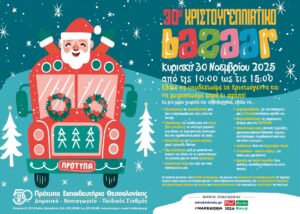 Το Σχολείο μας για 30η συνεχόμενη χρονιά σας προσκαλεί στη Χριστουγεννιάτικη Φιλανθρωπική Εορταγορά, την Κυριακή 30 Νοεμβρίου 2025, από τις 10:00 έως τις 15:00, στις εγκαταστάσεις του στους Ελαιώνες Πυλαίας.