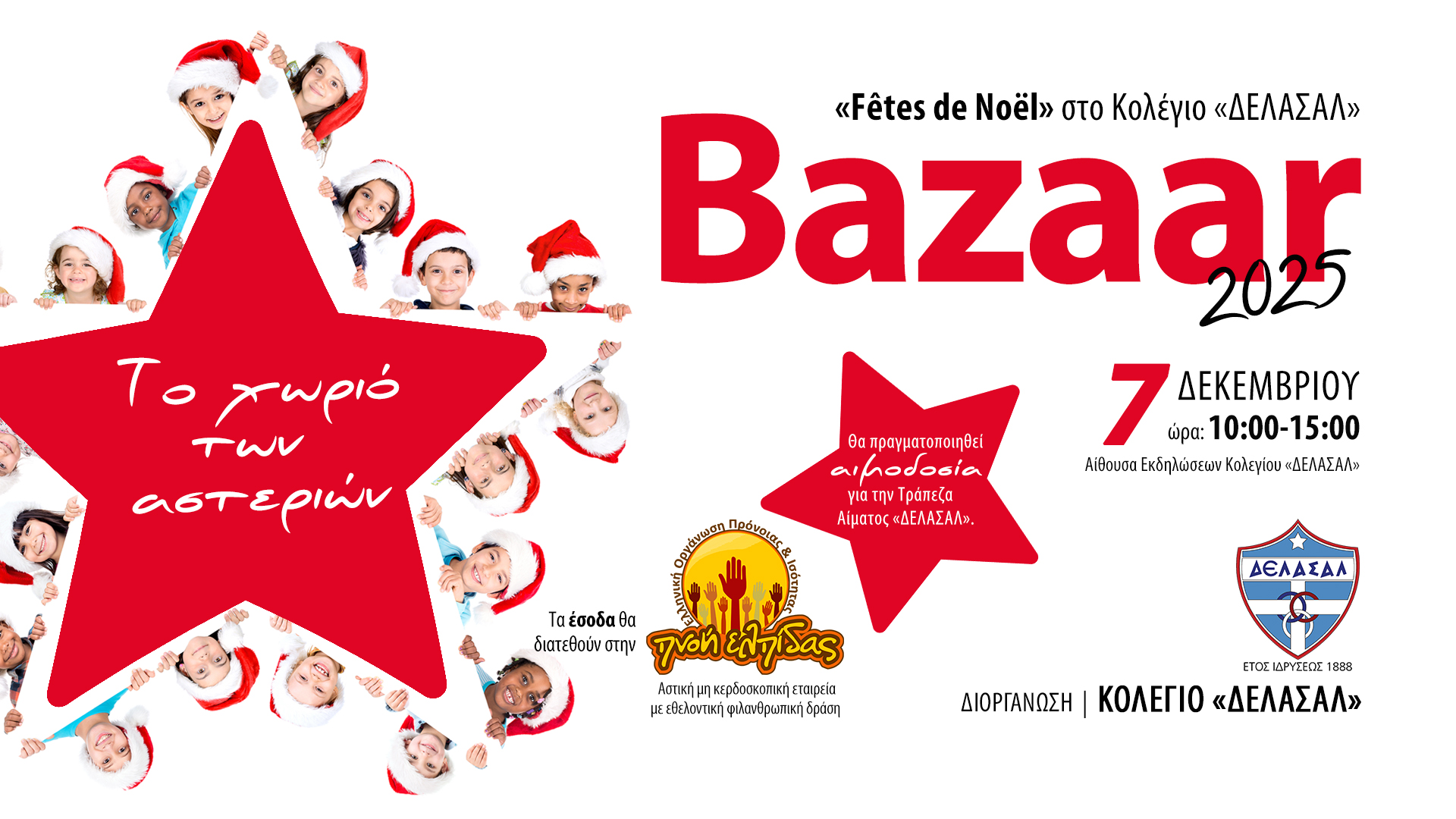 *Κυριακή 7 Δεκεμβρίου, Αίθουσα Εκδηλώσεων Κολεγίου «ΔΕΛΑΣΑΛ» από τις 10:00 έως τις 15:00.