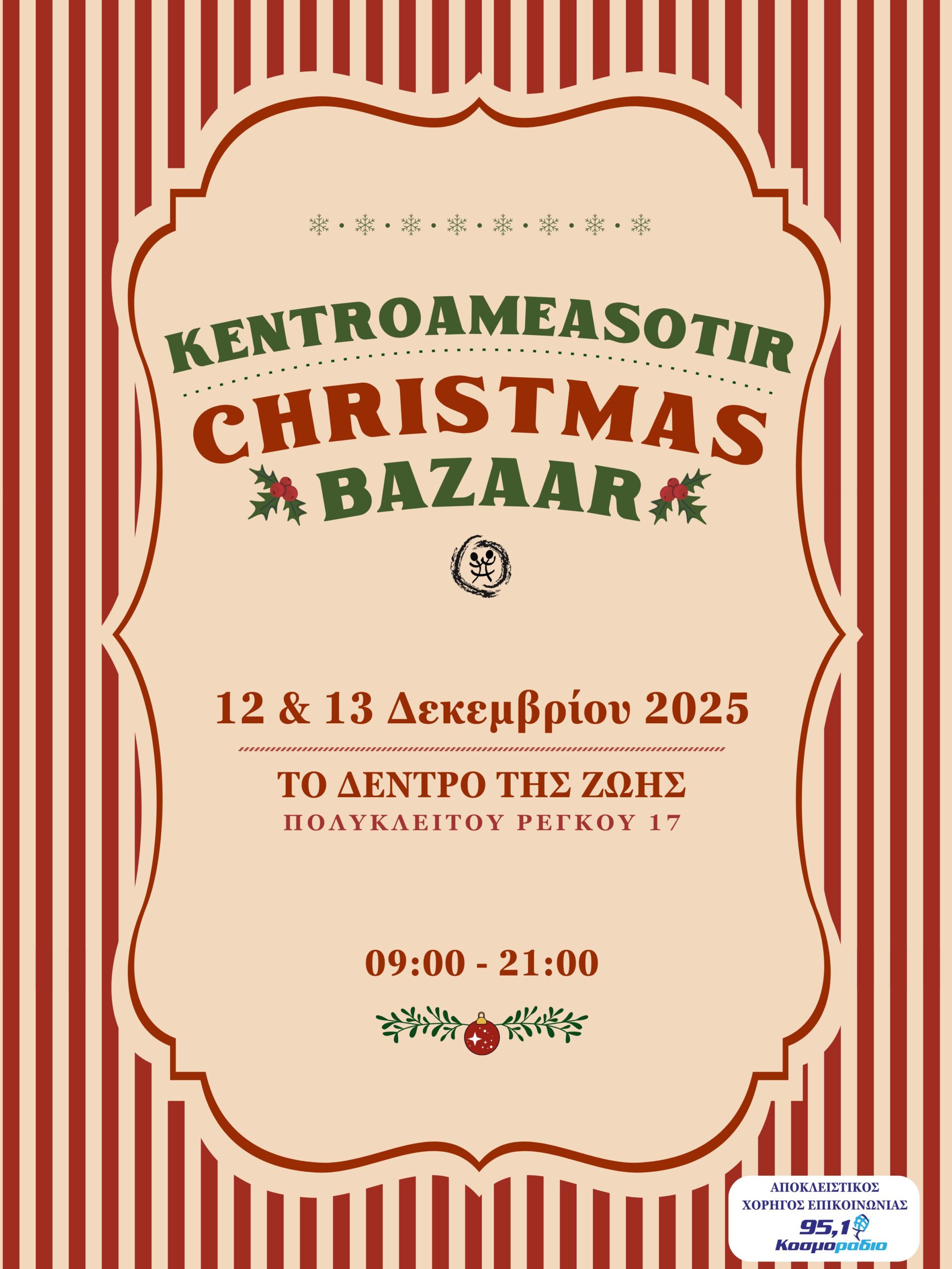 *Παρασκευή 12 Δεκεμβρίου και το Σάββατο 13 Δεκεμβρίου 2025 στη δομή του Φορέα «Το Δέντρο της Ζωής» επί της οδού Πολυκλείτου Ρέγκου 17, 09.00-21.00.
