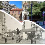 Στη γωνία με Αλεξάνδρας Παπαδοπούλου παραμένει το ίδιο σπίτι που βλέπουμε σε φωτογραφία του 1918, χωρίς να φαίνεται βεβαίως στο βάθος ο μιναρές του τζαμιού Τσιναρλί.