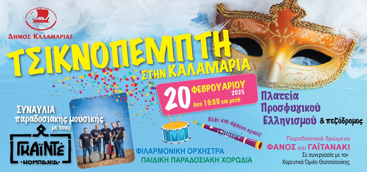 «Κέφι και παράδοση. Μουσική, χορός και δρώμενα. Η φετινή Τσικνοπέμπτη στην Καλαμαριά θα βρει κατοίκους και επισκέπτες να το γιορτάζουν, καθώς ο Δήμος Καλαμαριάς έχει ετοιμάσει μια σειρά από δρώμενα για την ημέρα.