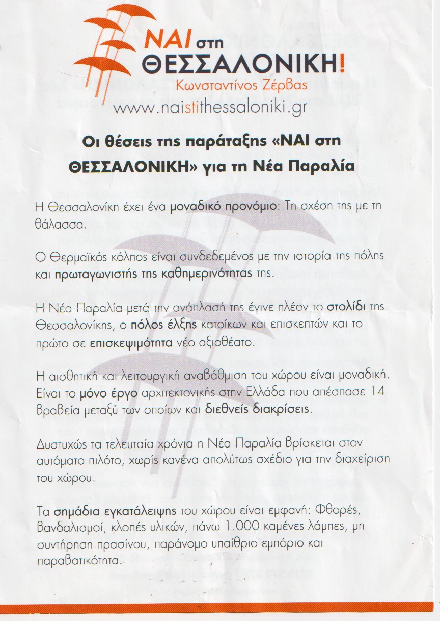 Ο σύλλογος Οι Φίλοι της Νέας Παραλίας δεν ανήκει σε κανένα Δήμαρχο, ανήκει στη Θεσσαλονίκη και στους πολίτες της και αυτούς θα υπηρετεί όσο οι δυνάμεις του του το επιτρέπουν.