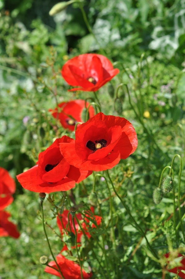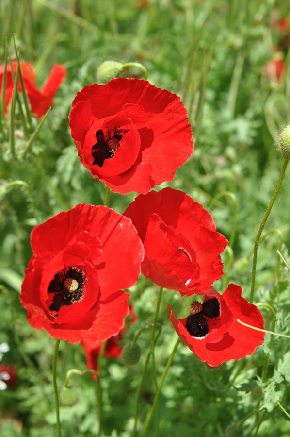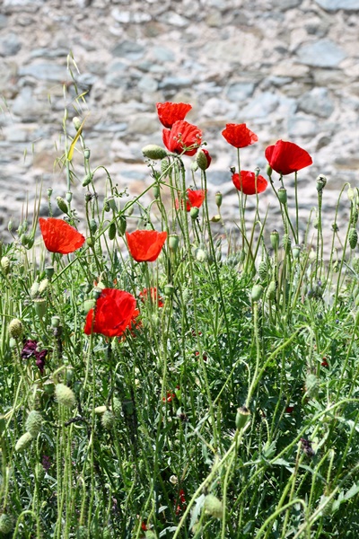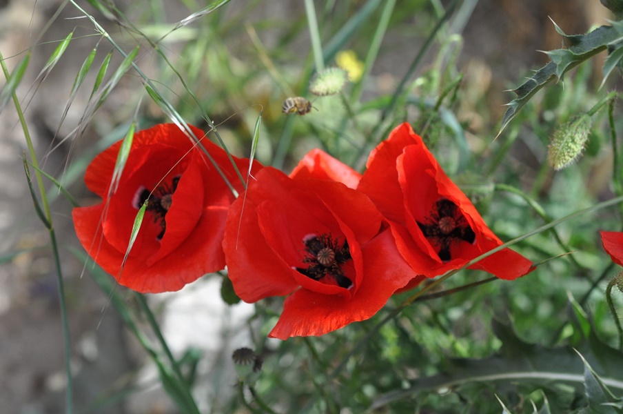 Με τα μεγάλα βαθυκόκκινα πέταλά τους, στολίζουν με όμορφα μπουκέτα ή κατακόκκινα «χαλιά», από τα μέσα Απριλίου μέχρι τα μέσα Ιουνίου, διάφορες γωνιές της πόλης.