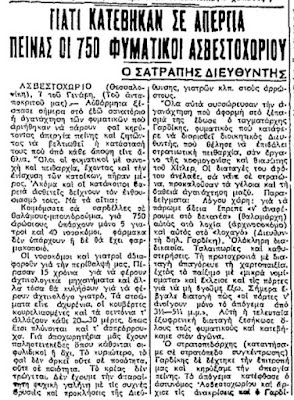 Είναι χαρακτηριστικό ότι σε 40.000 καπνεργάτες που εξετάστηκαν το 1929 βρέθηκαν : 13.930 με παθήσεις του αναπνευστικού συστήµατος, 12.611 με παθήσεις του πεπτικού συστήµατος, 7.090 με παθήσεις του δέρµατος και 3.749 με φυµατίωση.