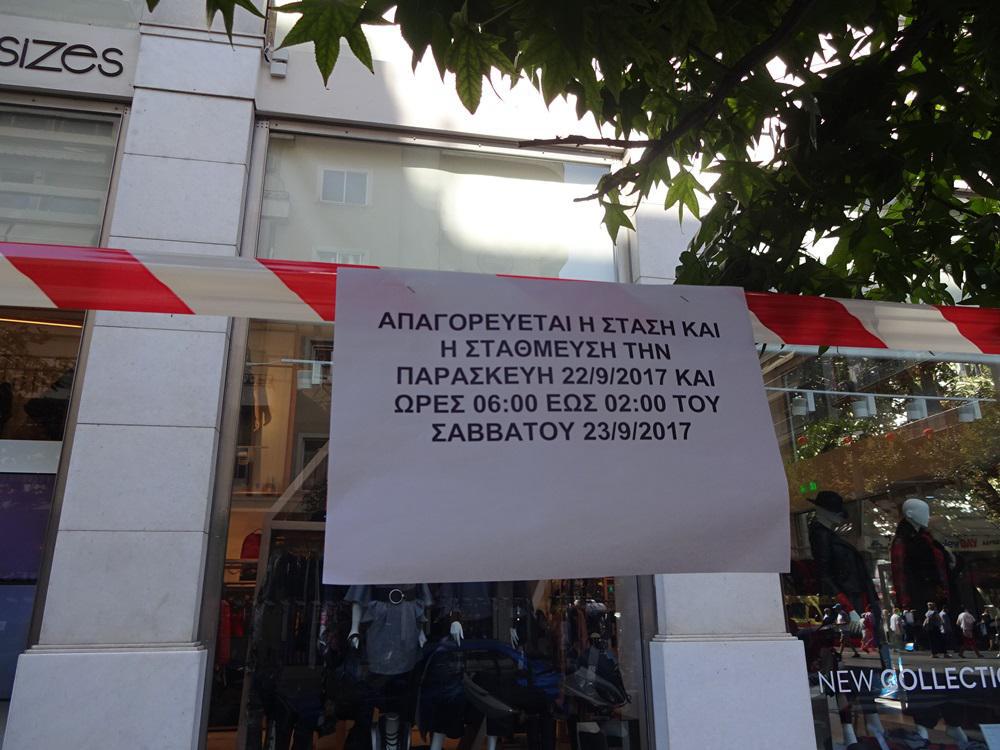 Επίσης θα υπάρχει προσωρινή απαγόρευση στάθμευσης όλων των οχημάτων στο τμήμα της Αγίας Σοφίας μεταξύ των οδών Ι. Τσιμισκή και Λεωφ. Νίκης, καθώς και η προσωρινή αναστολή της λειτουργίας της πιάτσας Ε.Δ.Χ. (ταξί) έξι οχημάτων στην υφιστάμενη εσοχή της οδού Αγίας Σοφίας μεταξύ των οδών Τσιμισκή και Μητροπόλεως.