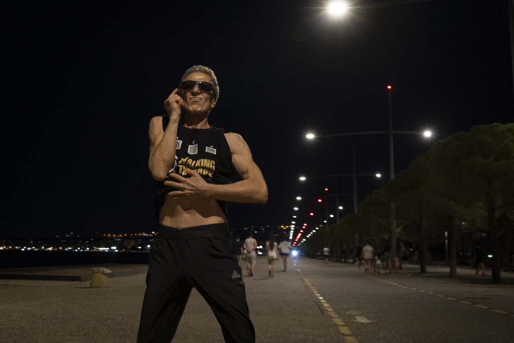 Πρώτα, συναντήσαμε τον κύριο Σωτήρη. Πάνω από μια δεκαετία έχει περάσει από την πρώτη μέρα που πήρε τη αρμόνικά του και ξεκίνησε να παίζει σε παγκάκια της Νέας Παραλίας. Γεννημένος και μεγαλωμένος στην πόλη της Θεσσαλονίκης, αφουγκράζεται εις βάθος την πνοή της. “Έρχομαι εδώ γιατί με ηρεμεί. Παλιά ήμουν μουσικός και λάτρευα το μπουζούκι. Δεν καταλαβαίνω τη σημερινή μουσική, πιστεύω έχει χαθεί το σημείο αναφοράς”, δήλωσε. Ωστόσο, ο ίδιος θεωρεί πως είναι “σημεία των καιρών” και δεν χάνει, ούτε στο ελάχιστο ,τον αυθορμητισμό και το ρομαντισμό του.