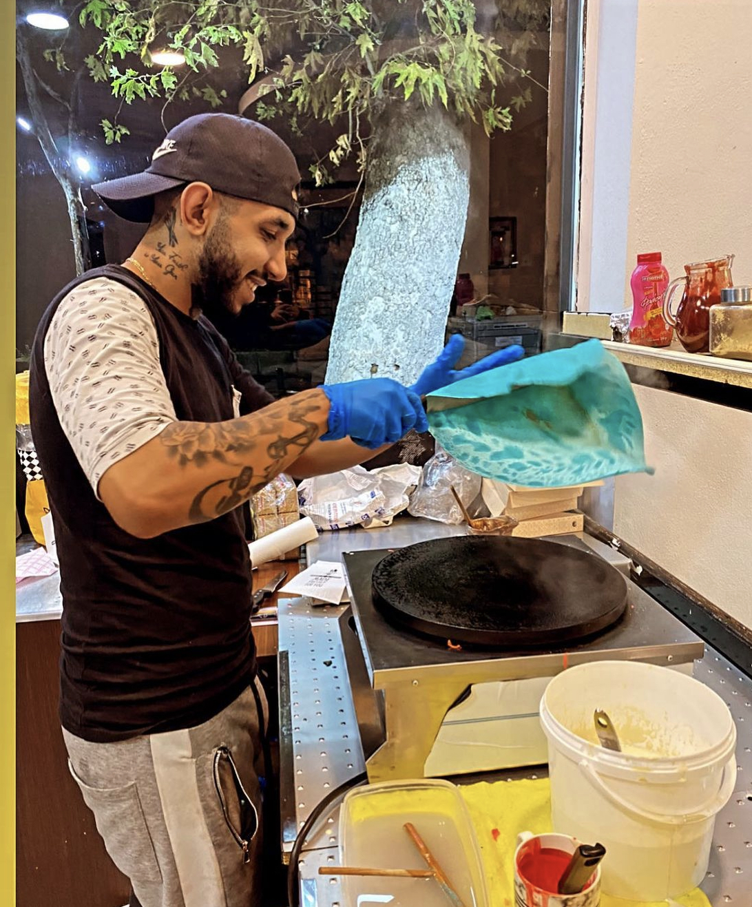 «Αποφάσισα να σπουδάσω γραφιστική γιατί αγαπούσα το σχέδιο και μου άρεσε η εφαρμοσμένη τέχνη. Μετά την αποφοίτηση μου, έκανα πρακτική άσκηση σε διαφημιστικό γραφείο και έπειτα σε δημιουργικό γραφείο για να δω την διαφορά. Στην συνέχεια ασχολήθηκα με γραφιστικά που μου ζητούσαν εντός γειτονίας. Δούλεψα σε διαφημιστική εταιρία και μετά ως ελεύθερος επαγγελματίας. Πριν από δύο χρόνια η οικογένεια αποφάσισε να ξεκινήσει μια επιχείρηση φαγητού. Το πρωί τυρόπιτες καφές και το βράδυ πίτσες μπέργκερ και ντελίβερι που εξυπηρετούσε την γειτονία. Στο μαγαζί αυτό υπήρχε μια ανεκμετάλλευτη αυλή 100τμ. την οποία αποφάσισα να αξιοποιήσω. Με τον καιρό ο χώρος αυτός εξοπλίστηκε έτσι που να καλύπτει κάθε ανάγκη της γειτονιάς σε θέματα φιλοξενίας εκδηλώσεων, γιορτών, γενεθλίων. Με τον καιρό όλο και περισσότεροι νέοι του Δενδροποτάμου αλλά και φίλοι εκτός γειτονίας επέλεξαν το μαγαζί για να δουν έναν αγώνα, να γιορτάσουν μια σημαντική τους στιγμή. Φιλοξενήθηκαν δράσεις του Συλλόγου Γυναικών Ρομά και συναντήσεις οργανώσεων. Τα πράγματα είναι αισιόδοξα, όσο προσπαθώ τόσο βλέπω ανταπόκριση. Όταν τα παιδιά του Δενδροποτάμου κάνουν ανοίγματα και εντός και εκτός γειτονιάς υπάρχει ανταπόκριση και ο κόσμος αρχίζει και βλέπει διαφορετικά την περιοχή που μέχρι τώρα την ήξερε μόνο μέσα από στερεότυπα. Όσο θα αλλάζουμε εμείς θα αλλάζει και η εικόνα μας προς τα έξω. Αγαπώ και τα δύο η γραφιστική είναι η μεγάλη μου αγάπη και με κάνει δημιουργικό το μαγαζί είναι κάτι που επιχειρηματικά με καλύπτει και θέλω να γίνομαι όλο και καλύτερος».