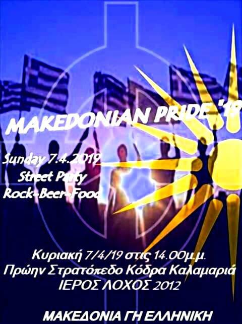 «Με αγωνιστικούς χαιρετισμούς και με το ενωτικό πνεύμα των αρχαίων ημών Προγόνων Μακεδόνων, σας περιμένουμε όλους», αναφέρει το κάλεσμα του Ιερού Λόχου στο Facebook για τις 7 Απριλίου, σε μια διαδικτυακή εκδήλωση που έχουν δημιουργήσει για να προπαγανδίσουν το Macedonian Pride, έναν εθνικιστικό θεσμό για τους «εθνικά σκεπτόμενους Έλληνες».