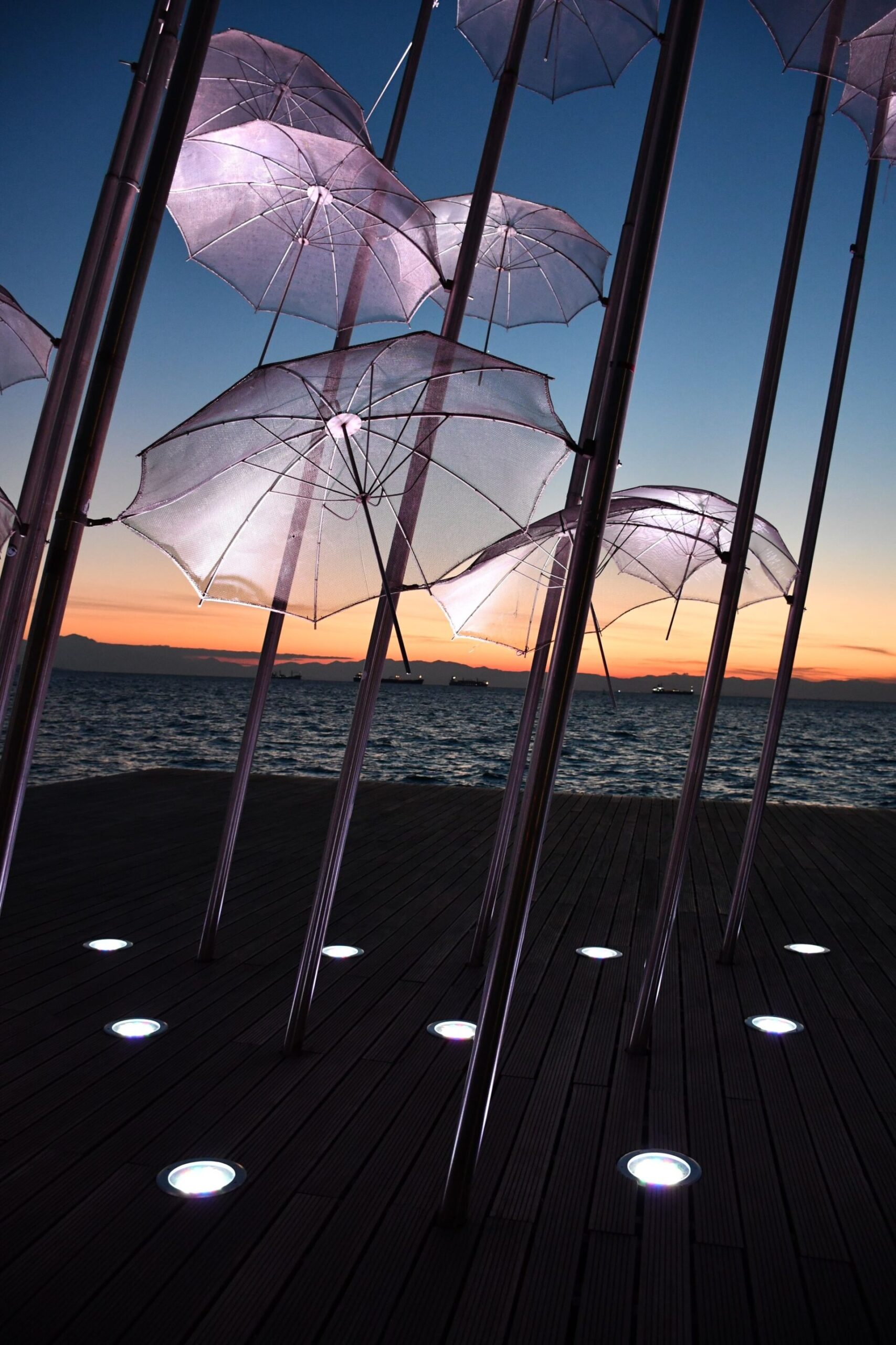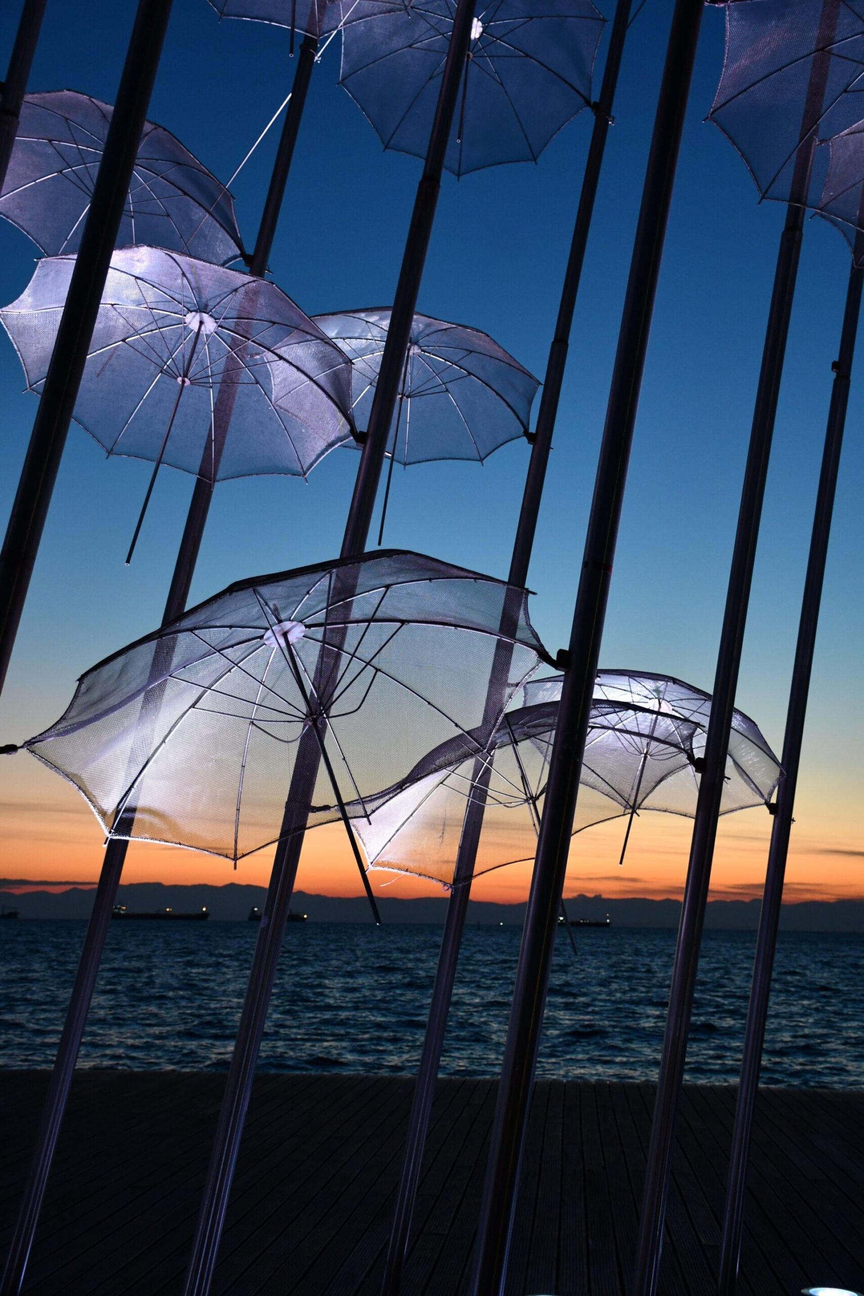 Οι «Ομπρέλες», ένα από τα σημαντικότερα και δημοφιλέστερα έργα του Γιώργου Ζογγολόπουλου (Αθήνα, 1 Μαρτίου 1903 – 11 Μαΐου 2004) τοποθετήθηκαν στην παραλία της Θεσσαλονίκης το 1997 όταν η πόλη ήταν Πολιτιστική πρωτεύουσα της Ευρώπης.
