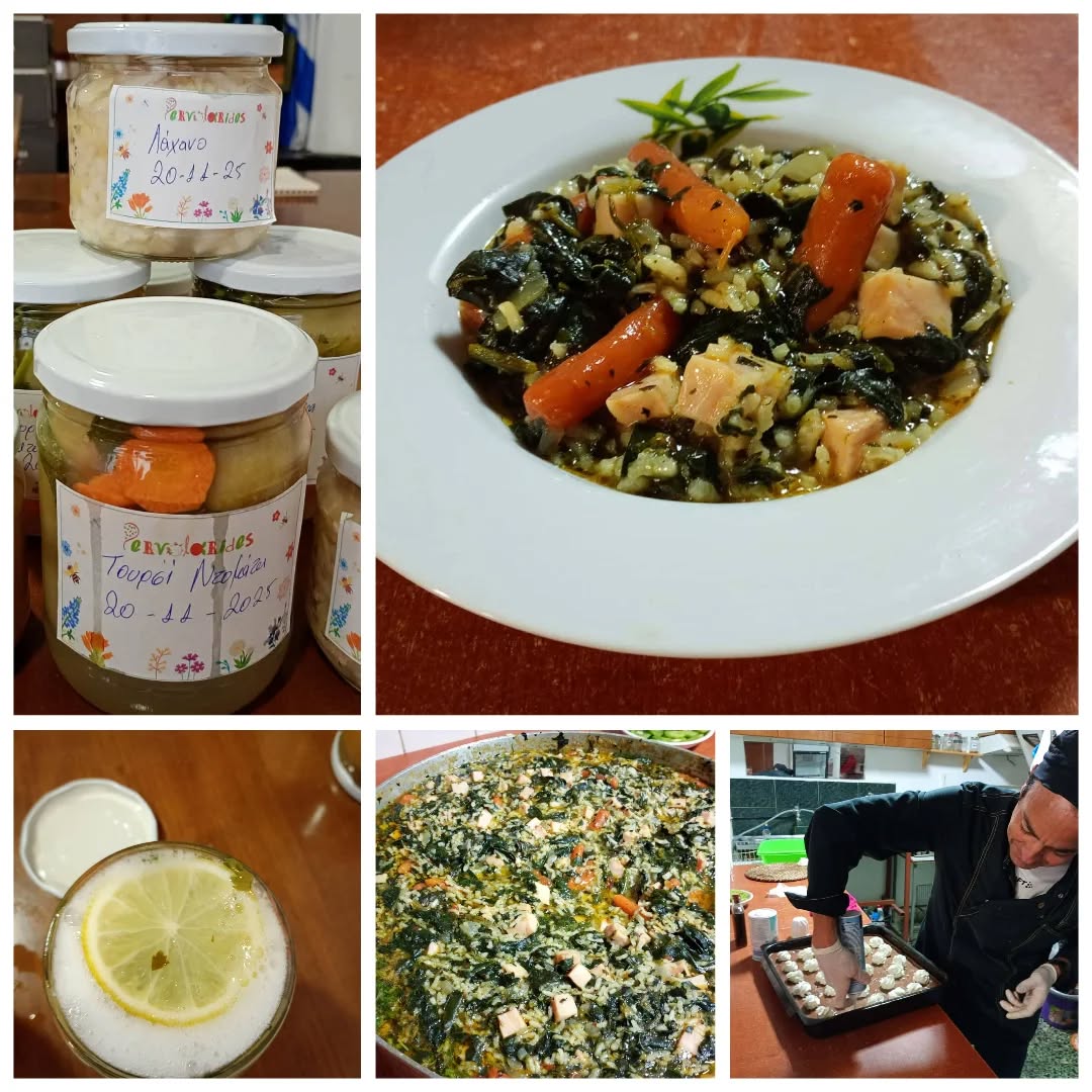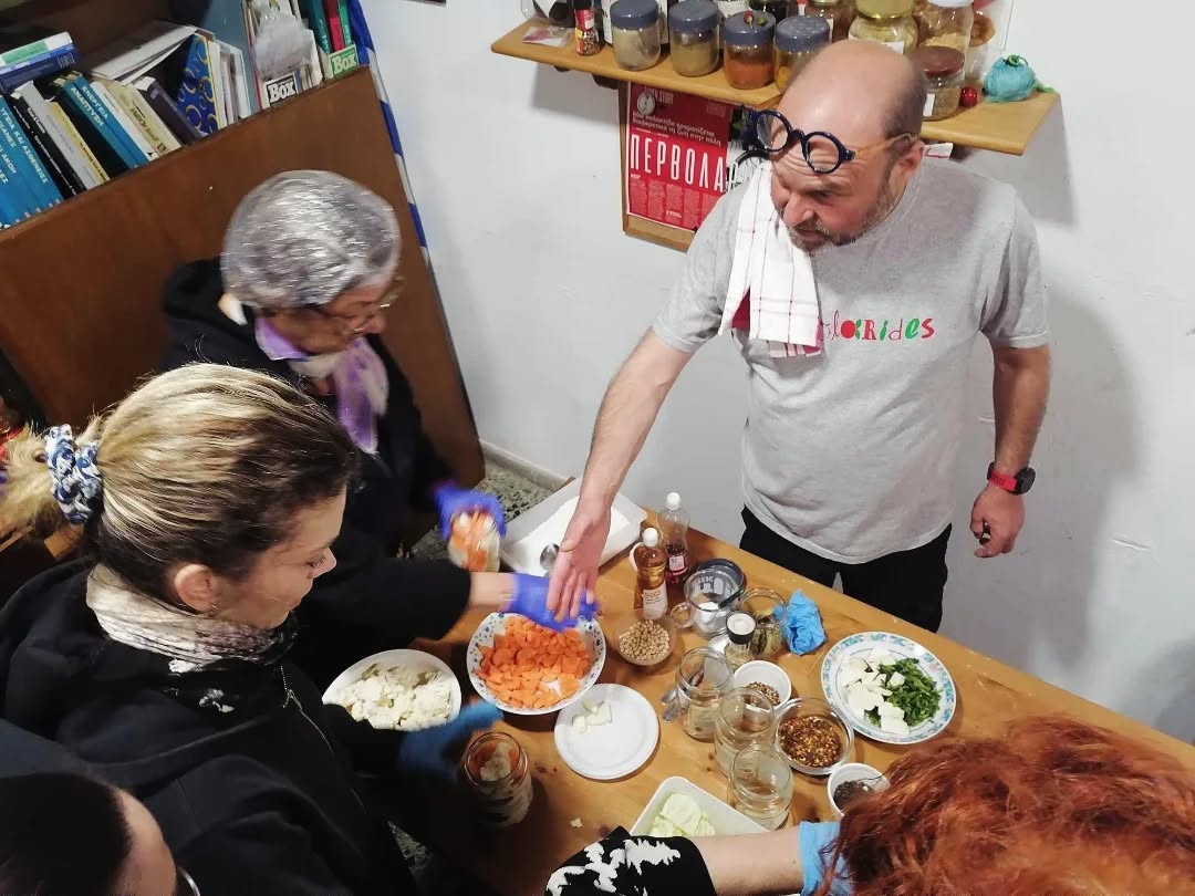 Παράλληλα έχουμε και μια δράση που δίνουμε τα μαγειρεμένα προϊόντα (ζεστό γεύμα), σε ανθρώπους που είτε ζουν σε αστεγία, είτε σε καθεστώς επισφαλούς στέγασης. Αυτό είναι το πρώτο κομμάτι. Το δεύτερο αφορά την διαδικασία που ακολουθούμε όταν έχουμε περίσσευμα. Σε αυτή την περίπτωση επεξεργαζόμαστε τα τρόφιμα και φτιάχνουμε π.χ. σάλτσα ντομάτας, μαρμελάδα, πίτσα, κουλούρι Θεσσαλονίκης, τυρί. Αυτά τα ονομάζουμε εργαστήρια ενδυνάμωσης και τα υλοποιούμε με τους ανθρώπους που βοηθάμε ή με διάφορες ομάδες που χρειάζονται ενδυνάμωση.