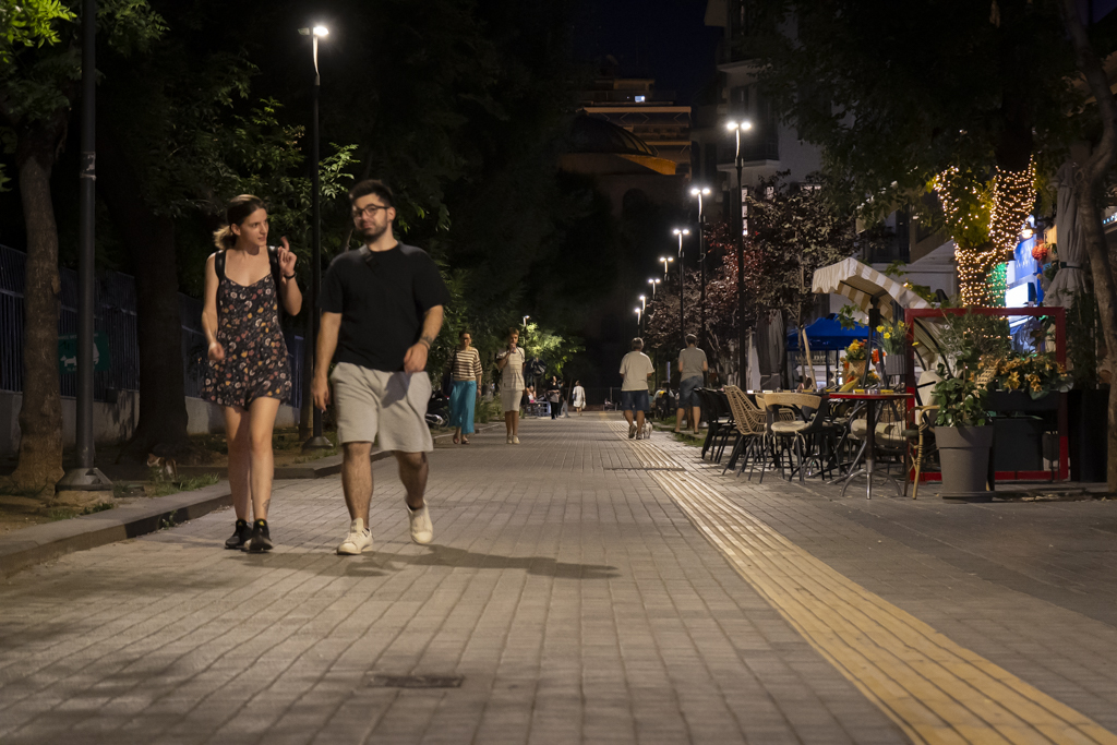 Έχει σχεδόν δέκα χρόνια από την ανάπλαση του πεζοδρόμου που άλλαξε τους κεντρικούς άξονες της Θεσσαλονίκης. Αν και σώζονται λίγα κτήρια του Μεσοπολέμου, ωστόσο ακόμη κι αυτά είναι αρκετά για να δημιουργήσουν μια ρομαντική ατμόσφαιρα στον πεζόδρομο της Αγίας Σοφίας. Ο κόσμος στα τραπεζάκια απολαμβάνει έναν καφέ, το γλυκό του, συναντά κάποιους φίλους, κοιτάζει τις βιτρίνες, κάνει τα ψώνια του, ξεκουράζεται σ’ ένα παγκάκι, περπατάει, κάνει σχέδια για το καλοκαίρι που έρχεται. Ένας μεγάλος πεζόδρομος που όλοι αγκαλιάσαμε στην πόλη!