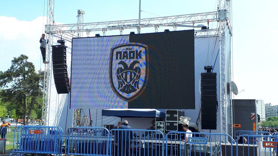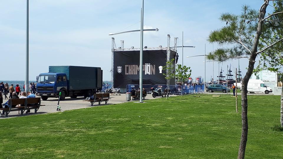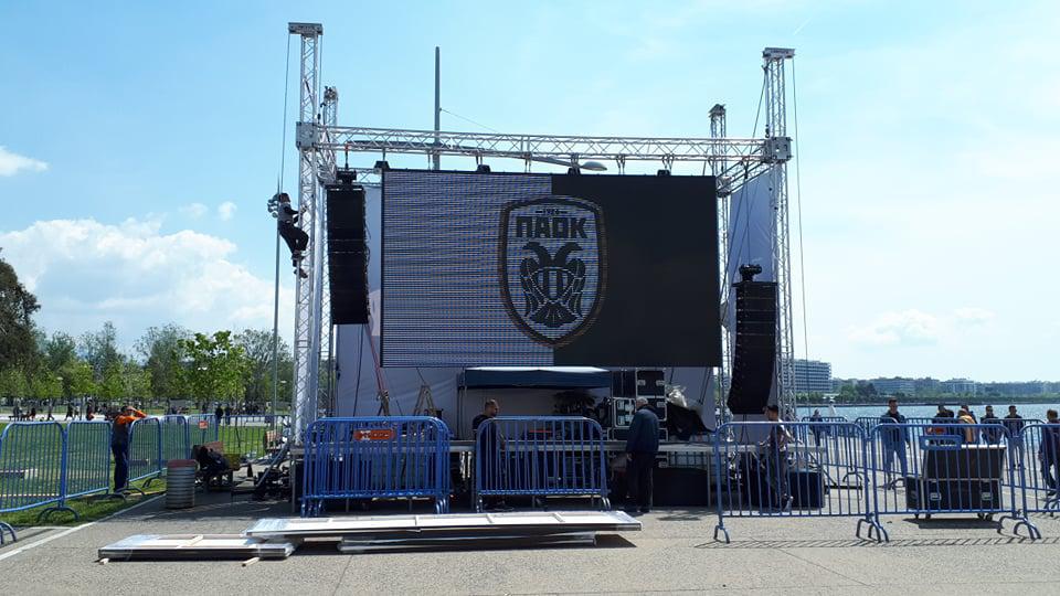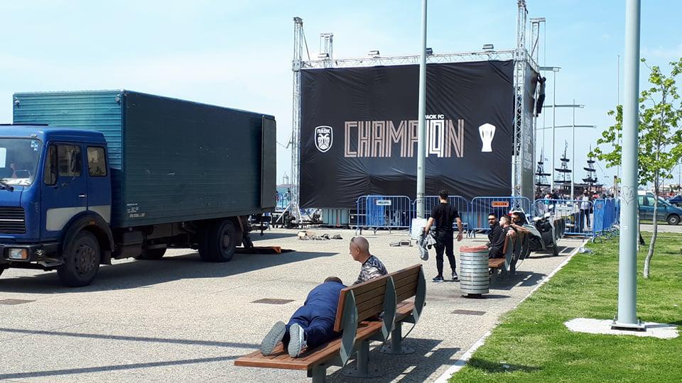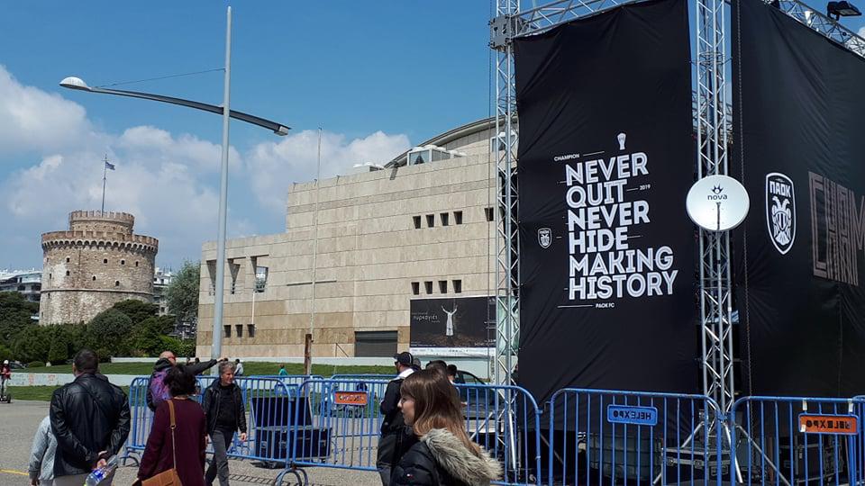 Σε εξέλιξη είναι οι προετοιμασίες γύρω από τον Λευκό Πύργο για την αποψινή αναμέτρηση του ΠΑΟΚ με τον Λεβαδειακό. Ήδη έχει στηθεί η γιγαντοοθόνη που θα μεταδώσει το παιχνίδι για όσους φιλάθλους δεν κατάφεραν να εξασφαλίσουν το πολυπόθητο εισιτήριο για τον αγώνα της Τούμπας.