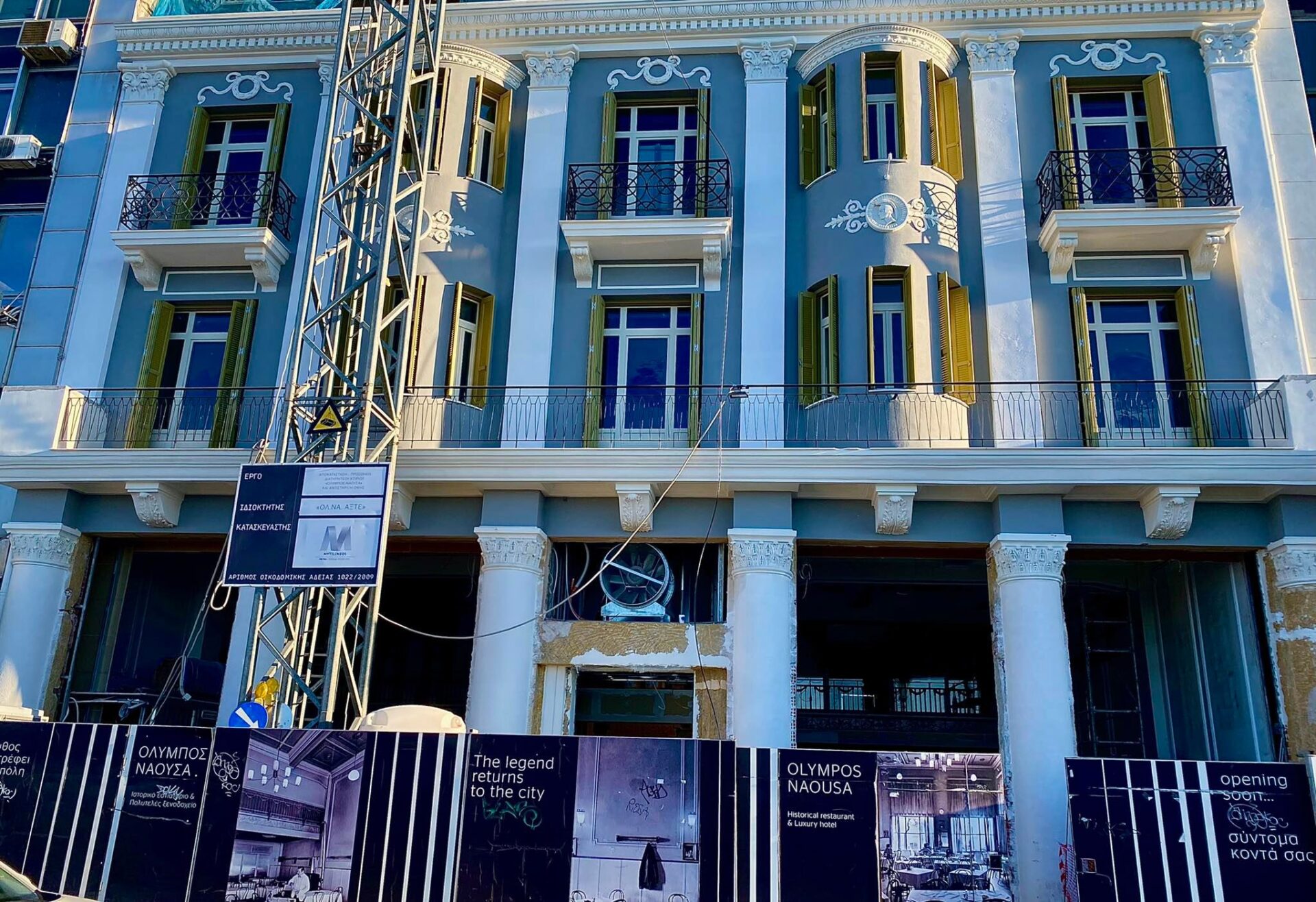 «Στον χώρο υπήρχαν κάποια σκηνικά, παλιές καρέκλες, που είχαν αφεθεί εκεί, από όταν γυρίστηκαν στο χώρο πλάνα της ταινίας “Το λιβάδι που δακρύζει” του Θεόδωρου Αγγελόπουλου (σ.σ. λίγο πριν από τα Χριστούγεννα του 2002, με το εστιατόριο ήδη κλειστό). Περιστέρια και σκηνικά. Δεν υπήρχε κάτι άλλο. Ήταν κάπως απόκοσμα» διηγείται στο ΑΠΕ-ΜΠΕ ο CEO της «Tor Hotel Group», η οποία συνέπραξε με τη «Grivalia Hospitality», με απώτερο στόχο στις αρχές του 2022 το «Όλυμπος Νάουσα» ν’ ανοίξει ξανά τις πόρτες του στο ιστορικό κτήριο, όπου θα εγκαινιαστεί ταυτόχρονα και το πεντάστερο ξενοδοχείο «ΟΝ Residence», στο πλαίσιο συνολικής επένδυσης άνω των 20 εκατ. ευρώ, με χρηματοδότηση και από τον αναπτυξιακό νόμο 4399/2016.