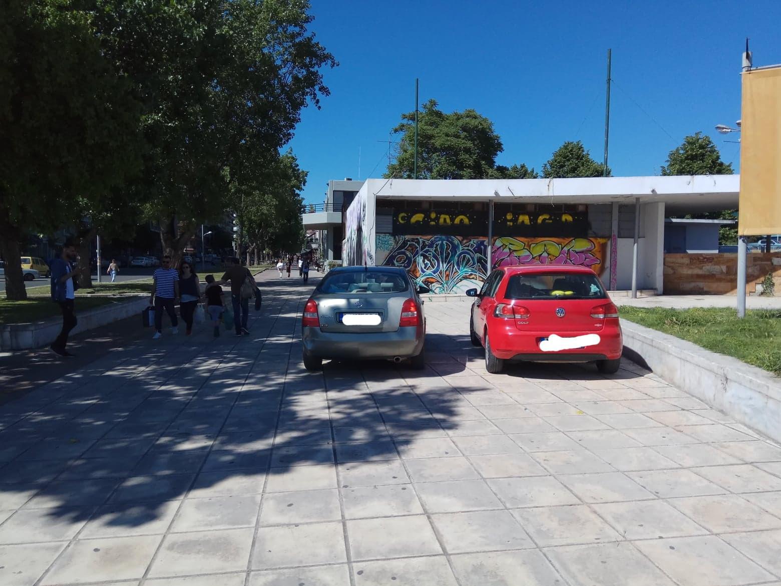 Έχει πολύ κόσμο σήμερα στην Έκθεση και την πόλη. Για κάποιους η αναζήτηση πάρκινγκ είναι προσπάθεια. Μερικοί έξυπνοι δεν πτοήθηκαν να ανεβάσουν τα αυτοκίνητα τους πάνω στο πεζοδρόμιο της Αγγελάκη, γιατί έχουν συνηθίζει να πηγαίνουν καβάλα στις εκδηλώσεις που τους ενδιαφέρουν. Μήπως θα τους τιμωρήσει κανείς; Η τροχαία άφαντη στην πόλη σε ένα Σάββατο γεμάτο κόσμο…