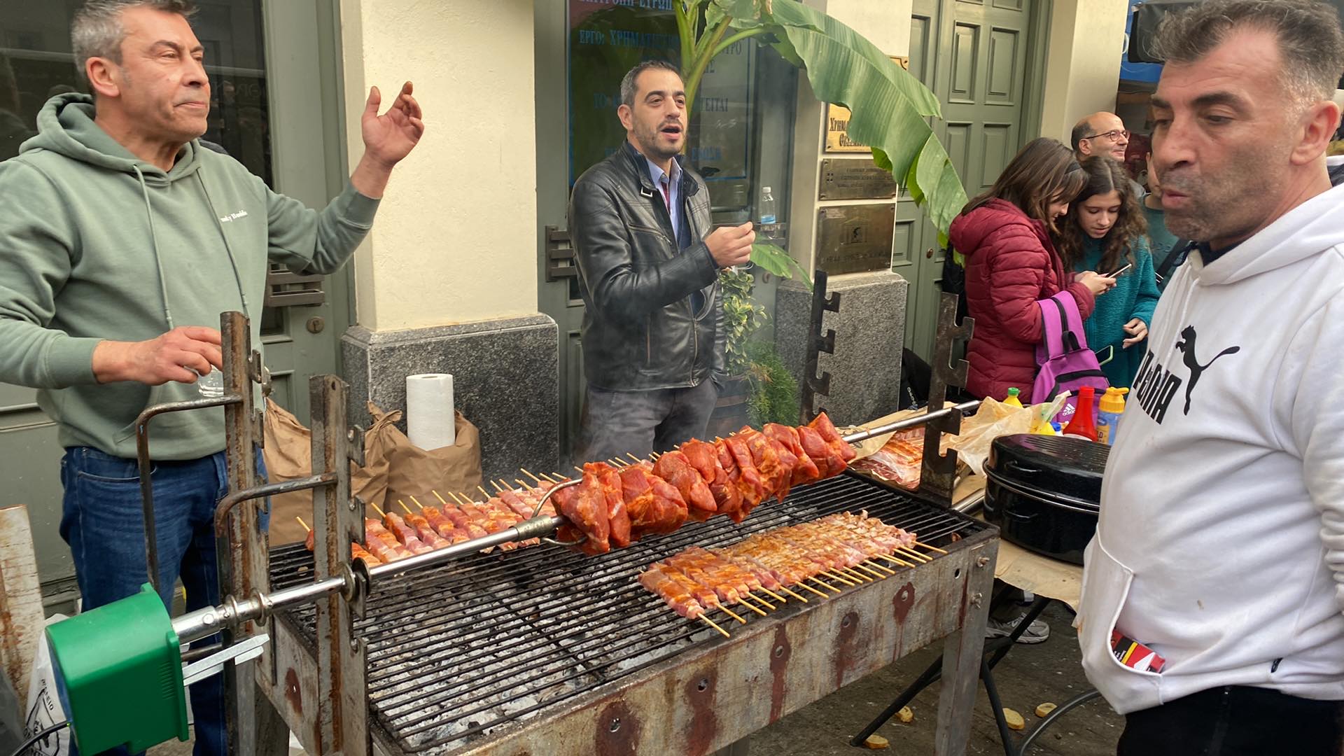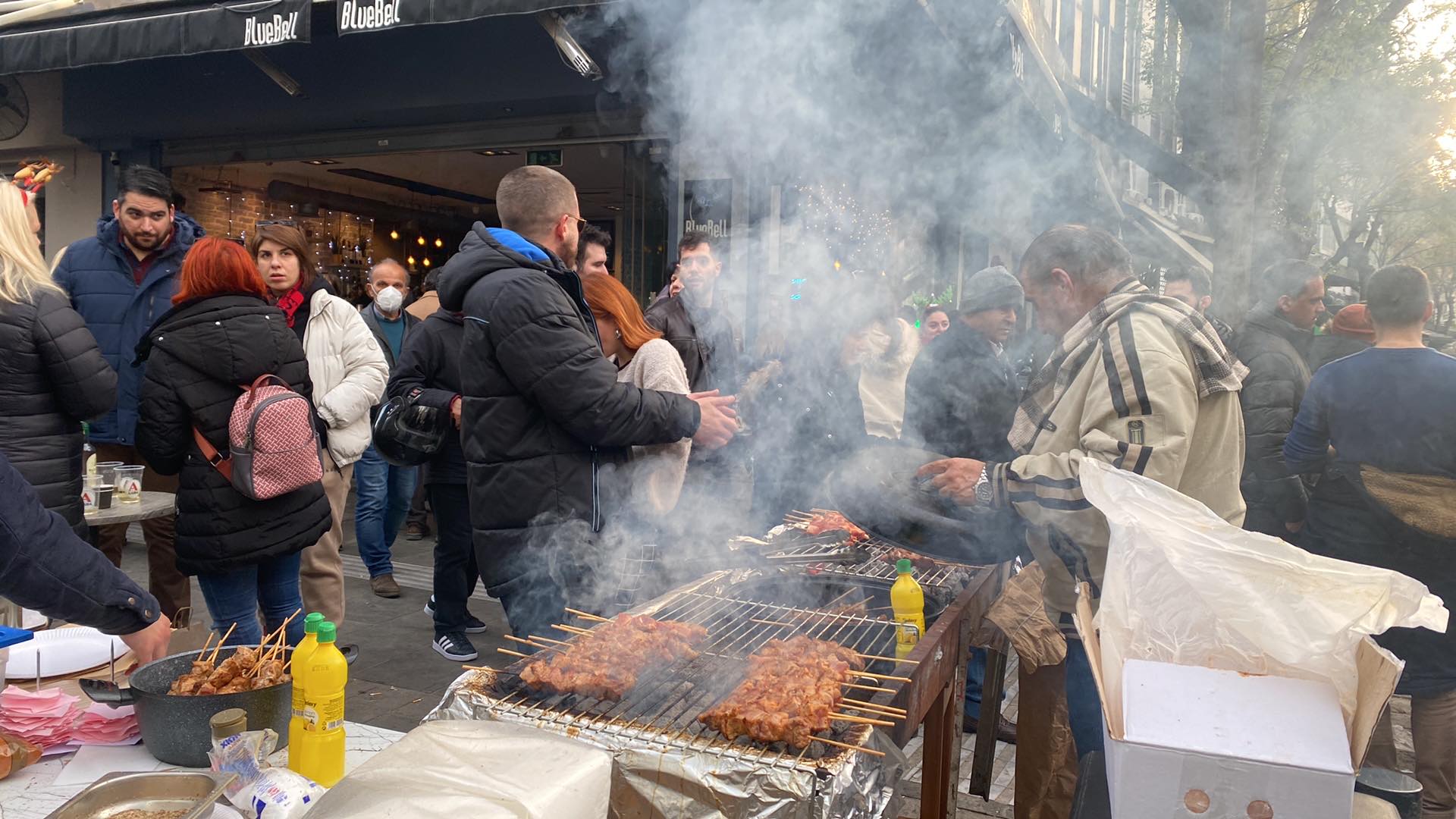 Από το μεσημέρι του Σαββάτου (24/12) και όπως κάθε χρονιά, έχει στηθεί μεγάλο γλέντι με φαγητό, ποτό και μουσική.