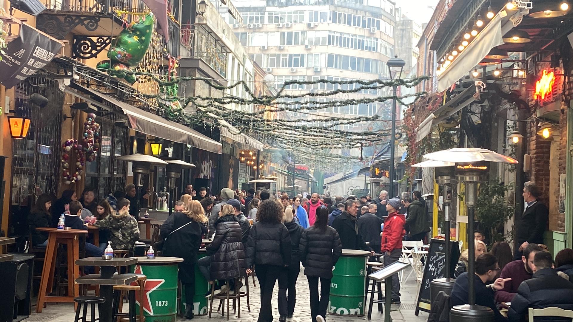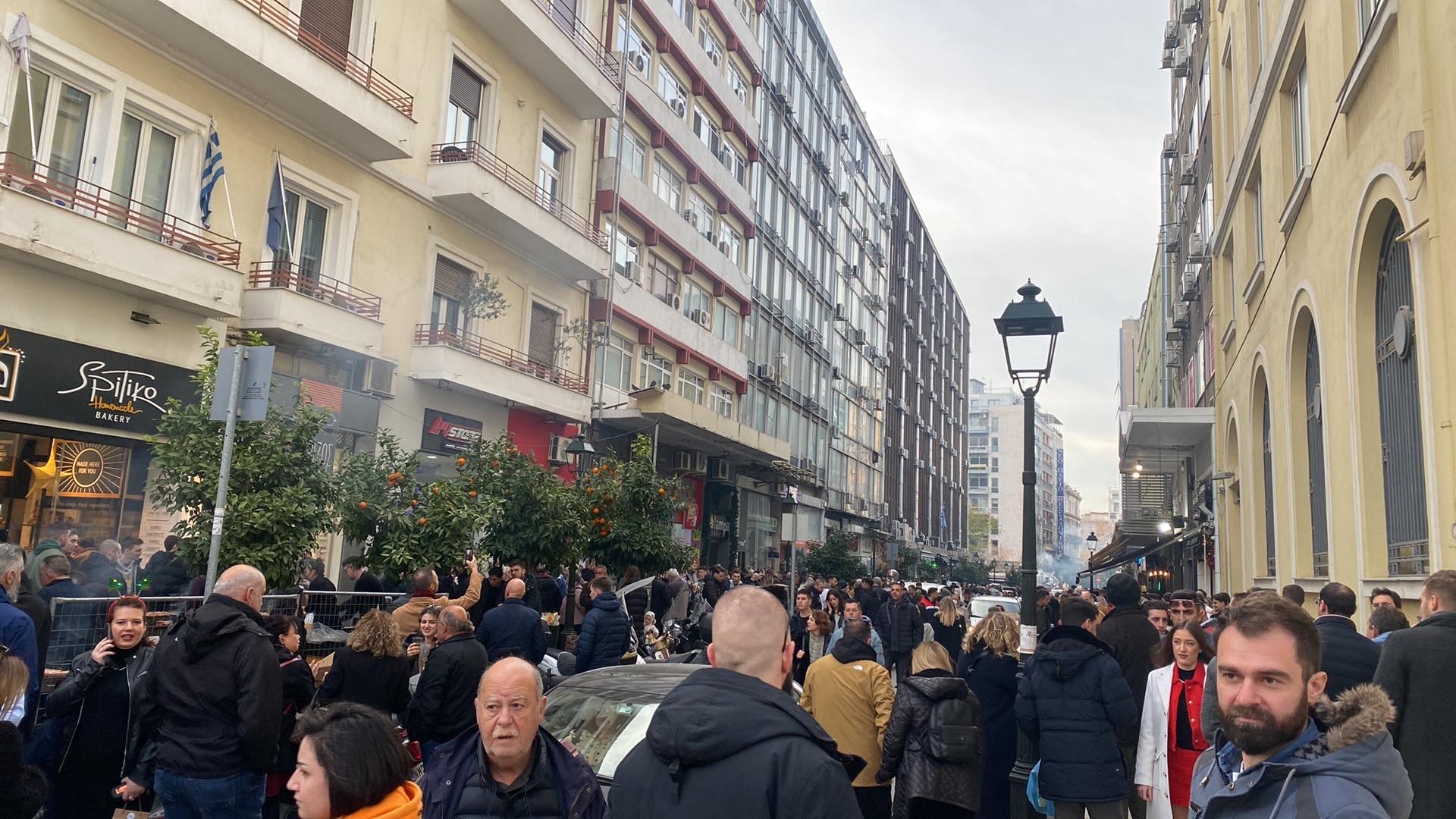 Το ίδιο εορταστικό κλίμα επικρατεί και στα Λαδάδικα, με τον κόσμο να βρίσκεται στα μαγαζιά της περιοχής.