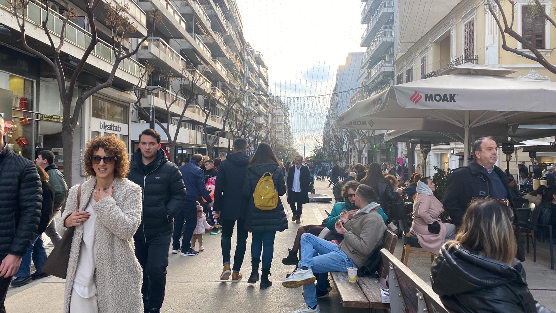 Τα πεζοδρόμια και οι δρόμοι της πόλης έχουν γεμίσει από φωνές και ανθρώπους που απολαμβάνουν το εορταστικό κλίμα που επικρατεί στη Θεσσαλονίκη.