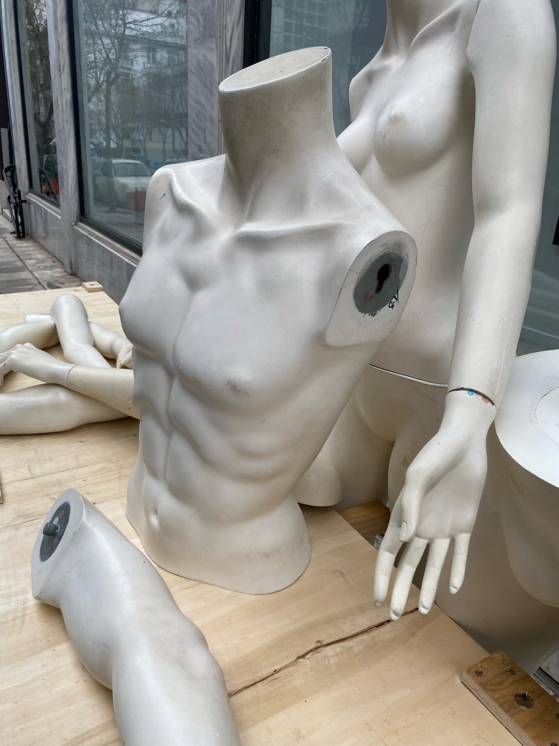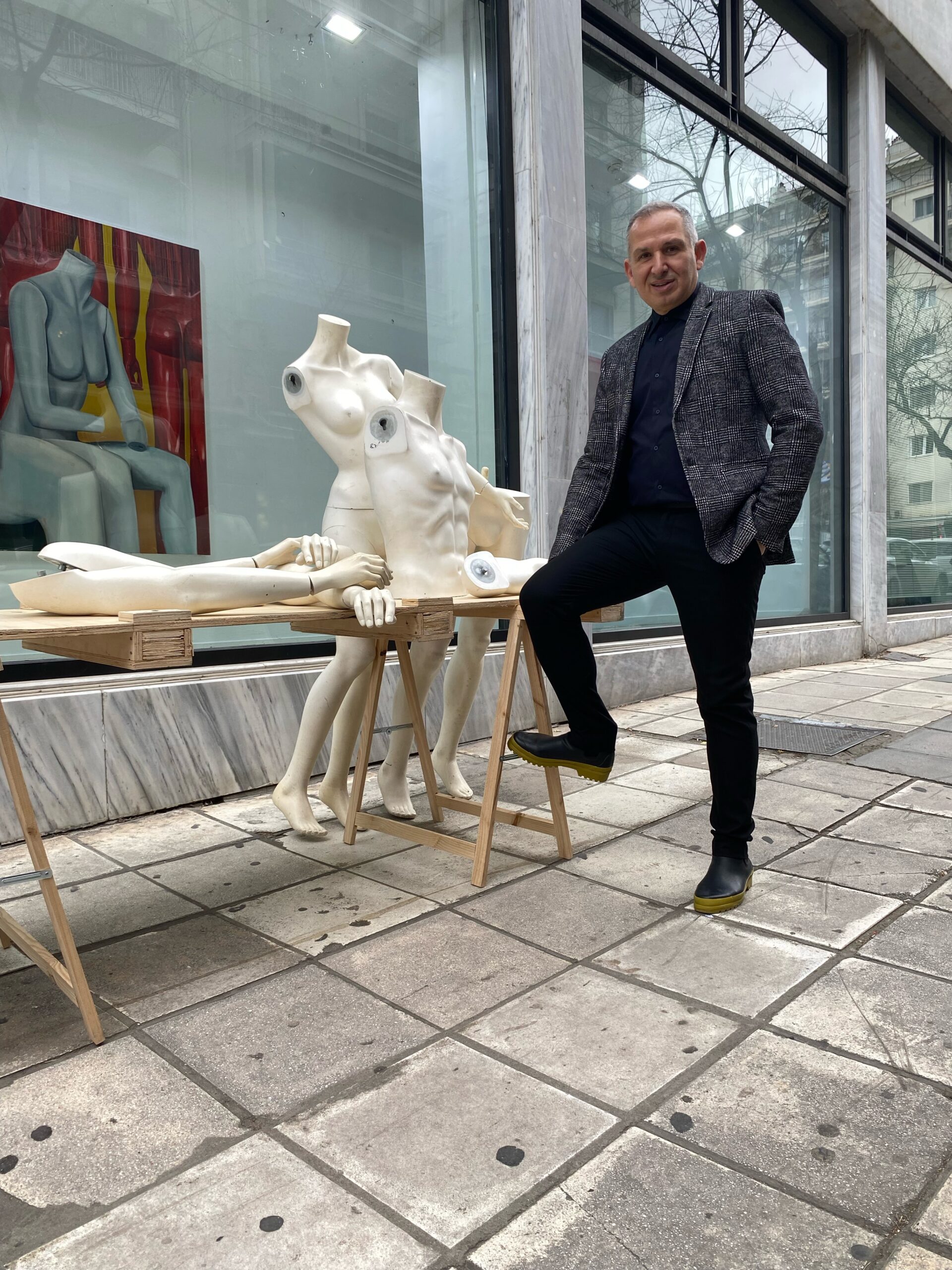 Ένα θεατρικό κατασκεύασμα του Κάρελ Τσάπεκ. Ένας εργάτης της τεχνολογικής εξέλιξης. Ευνουχισμένος σε μια κοινωνία ανάπηρη. Είσαι ο Άνθρωπος “Βιτρίνα”. Ο μετα-άνθρωπος. Απρόσωπη μορφή, ανδρείκελο και πλαγγόνα μιας νέο-ποπ αντίληψης, μιας νέο-ποπ αισθητικής. Η βιομετρική επιτήρηση και η ψηφιακή συνδεσιμότητα υποκαθιστούν την επικοινωνία σου. Οι δυνατοί αλγόριθμοι αποφασίζουν για εσένα. Ομαδοποιούν τις λέξεις-κλειδιά. Διαδίδουν τις έννοιες πιο γρήγορα από την ταχύτητα φωτός.