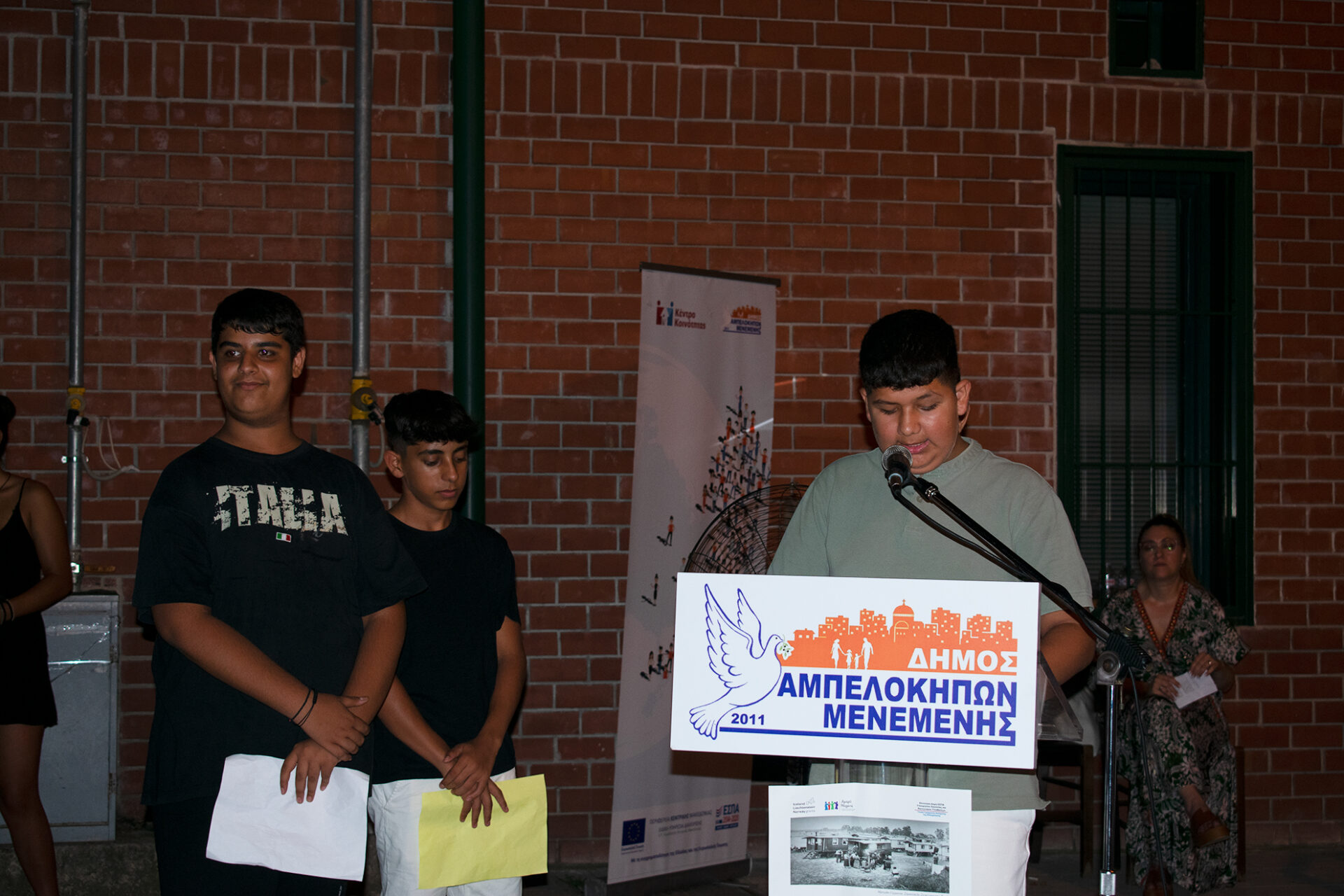 Η εκδήλωση συνεχίστηκε με ενός λεπτού σιγή στα θύματα του ολοκαυτώματος, ενώ στη συνέχεια τα παιδιά της κοινότητας απήγγειλαν ποιήματα μεταδίδοντας το συναίσθημα της εποχής δείχνοντας τη θλίψη τους στον κόσμο καθώς πολλά από αυτά τα παιδιά έχουν αδικηθεί στη ζωή τους κουβαλώντας ταμπέλες που κάποιοι άλλοι έχουν δημιουργήσει για αυτούς : ” Οι γύφτοι είναι αμόρφωτοι”, ” Τα παιδιά δε θέλουν να πάνε σχολείο” κλπ.