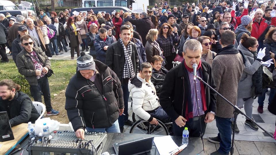 “Απο τη Θεσσαλονίκη στέλνουμε ένα δυνατό μήνυμα” είπε ο προεδρος της ΕΣΑΜΕΑ Γιάννης Βαρδακαστανης , τονίζοντας ότι αυτο απευθύνεται προς το σύνολο του πολιτικού κόσμου και σε όλη την κοινωνία .”Είμαστε αποφασισμένοι να διεκδικήσουμε όλοι μαζί, με έναν αταλάντευτο και ακάματο αγώνα, να ζούμε με αξιοπρέπεια στον τόπο μας”.