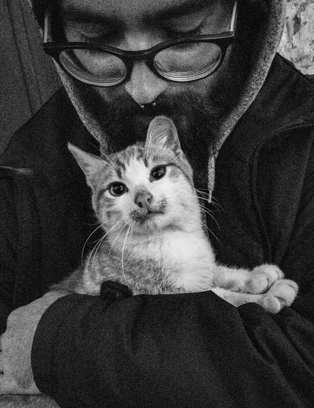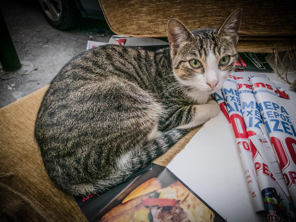 Και γιατί γάτες και όχι σκύλοι; «Οι σκύλοι είναι μία άλλη εκδοχή της ιστορίας, ένα άλλο point of view, με το οποίο ελπίζω να ασχοληθώ στο μέλλον. Οι γάτες υπάρχουν στη ζωή μου από τα παιδικά χρόνια, οι ασπρόμαυρες γάτες της γιαγιάς μου, οι παρδαλές γάτες του χωριού, της εφηβείας, η πορτοκαλί γάτα που έσωσα από τις ρόδες του αυτοκινήτου που γκάζωσε για να προλάβει το φανάρι και τώρα έγινε η γάτα της κόρης μου, η τρελή γάτα της αγαπημένης μου… Παρά ταύτα δεν έχω δική μου γάτα, ίσως όμως, να με έχουν επιλέξει για φωτογράφο τους, κι αυτό μου αρκεί».