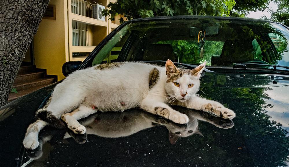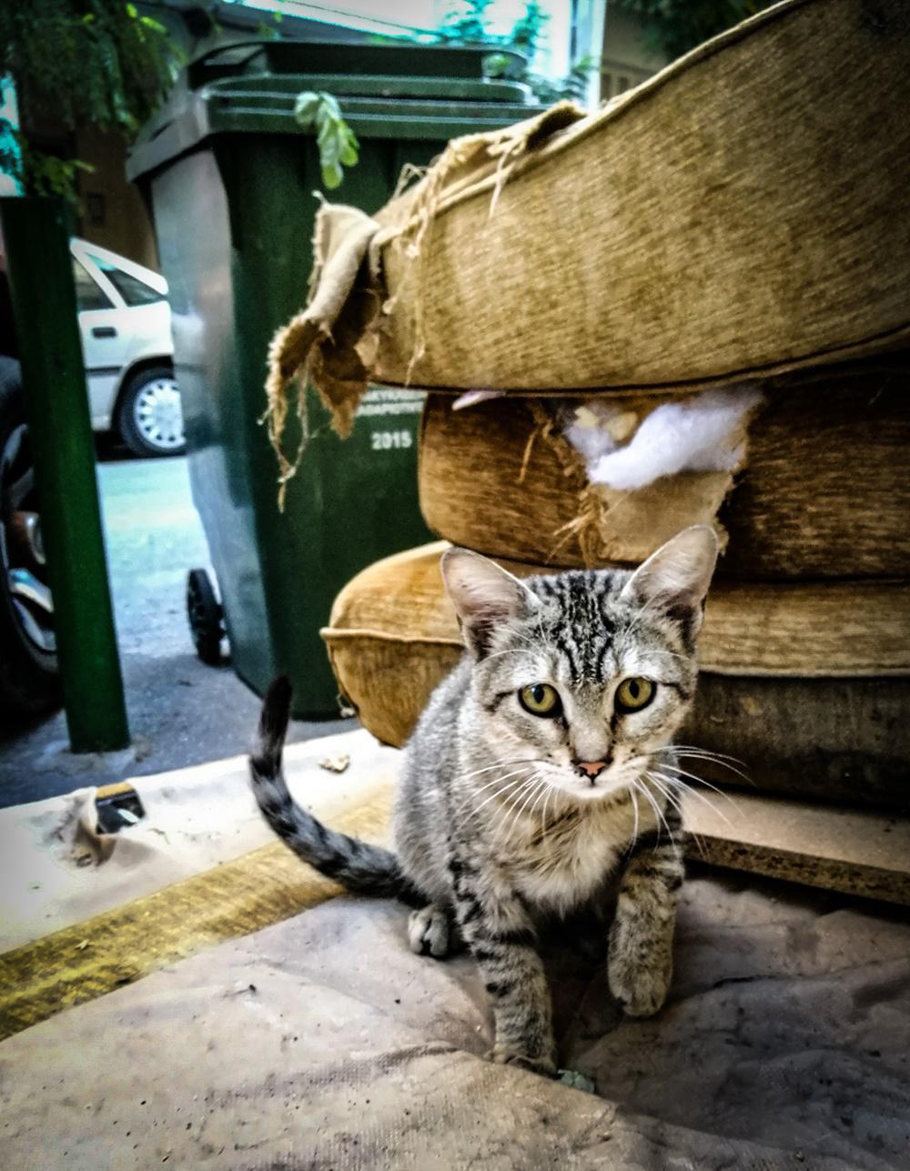 Σε ποια σημεία, λοιπόν, συναντάς τις εφτάψυχες της πόλης; «Επιλέγουν περιοχές στις οποίες μπορούν εύκολα να είναι αόρατες και ταυτόχρονα ορατές. Τις συναντάς σε εγκαταλελειμμένα κτίρια, κάτω από αυτοκίνητα, επάνω σε αυτοκίνητα, να λιάζονται σε διάφορα παρατημένα έπιπλα, βρίσκονται σε οποιοδήποτε στενό στην πόλη και εμφανίζονται όταν έχουν κάτι να πουν».