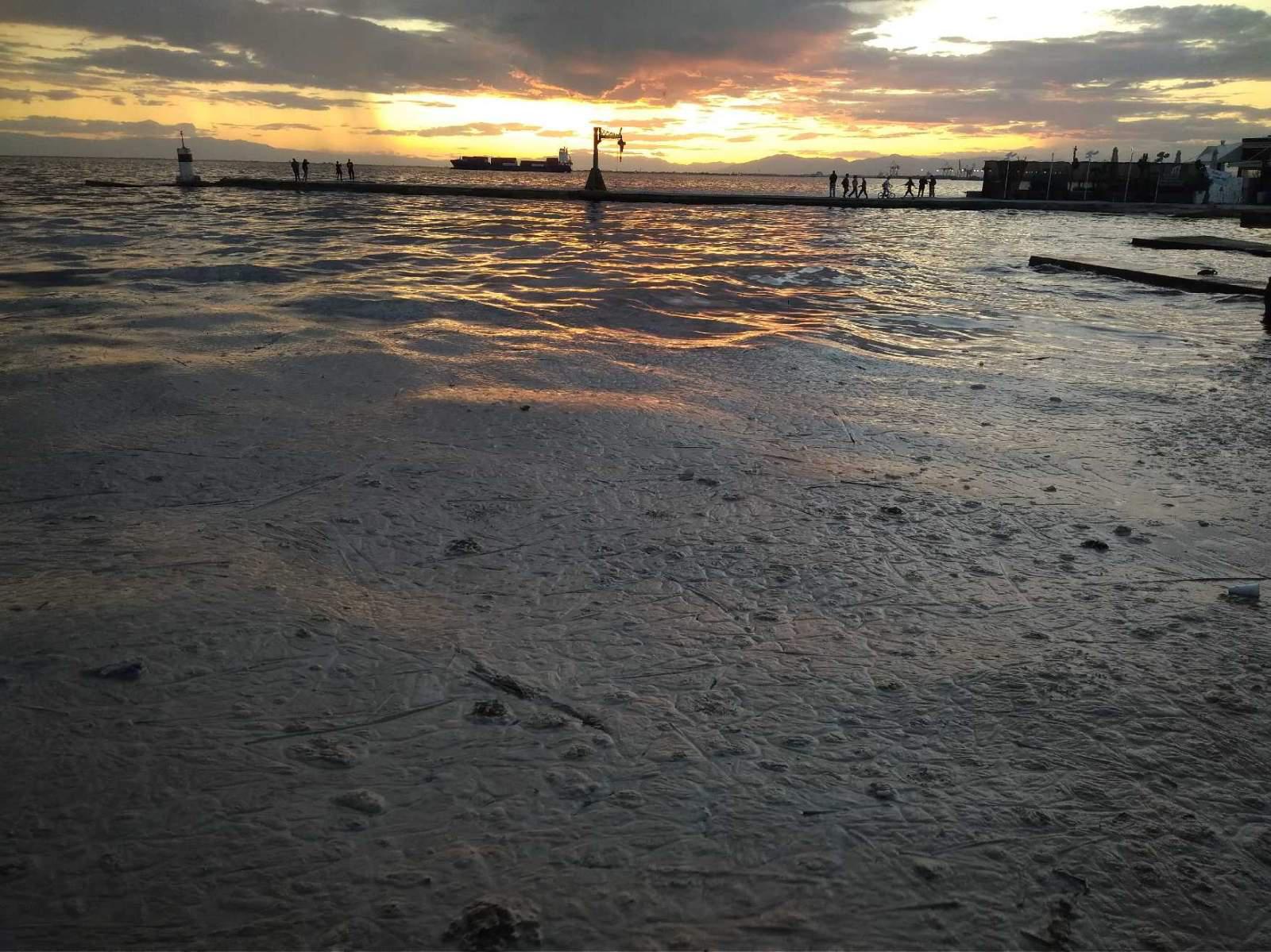 Ο Θερμαϊκός βαμμένος πορτοκαλένιος απόψε, υπέροχο ηλιοβασίλεμα. Σε αντίθεση όμως αν κατέβαζες τα μάτια σου από τον ορίζοντα στη θάλασσα η εικόνα ήταν από απογοητευτική μέχρι αηδιαστική. Συνδυασμός παλίρροιας και σκουπιδιών. Χάλι.