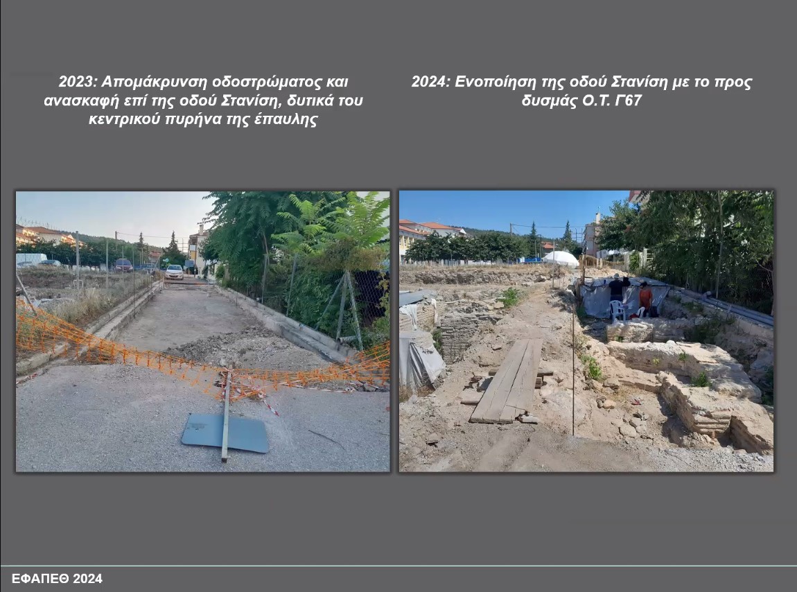 Σύμφωνα με την ανακοίνωση της προϊσταμένης της ΕΦΑ Περιφέρειας Θεσσαλονίκης Μαρίζας Τσιάπαλη και της αρχαιολόγου Αθηνάς Τοκμακίδου, στην 37η Επιστημονική Συνάντηση για το αρχαιολογικό έργο στην Μακεδονία και τη Θράκη, κατά τη διάρκεια της νεότερης ανασκαφής, αποκαλύφθηκε ο τοίχος που οριοθετεί τους χώρους της παλιάς ανασκαμμένης έπαυλης στα δυτικά, που διακλαδίζεται προς τα ανατολικά σε μικρότερους κάθετους σε αυτόν, ενώ σώζονται και τρία θυραία ανοίγματα, που αντιστοιχούν στα δύο δυτικά δωμάτια και στη στοά του περιστυλίου.