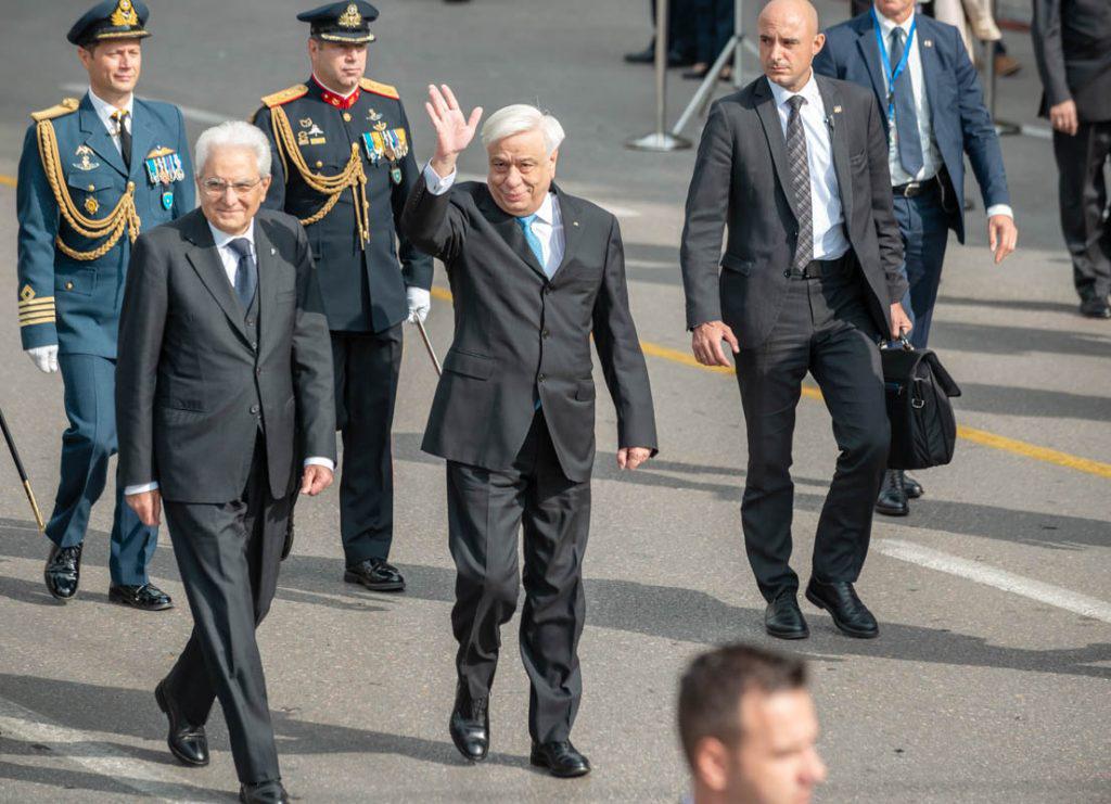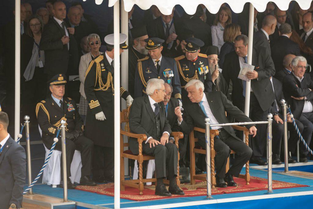 Τα στρατιωτικά τμήματα κατέκλυσαν την παραλία της πόλης υπό το βλέμμα των προέδρων της Ελληνικής και Ιταλικής Δημοκρατίας, Προκόπη Παυλόπουλου και Σέρτζιο Ματαρέλα.