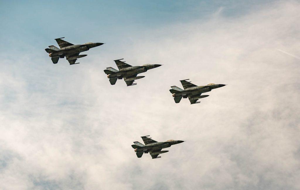 Η παρέλαση ολοκληρώθηκε με μια επίδειξη ακριβείας που έκανε με μαχητικό F16 επισμηναγός, μέλος της ομάδας αεροπορικών επιδείξεων “Ζευς”.