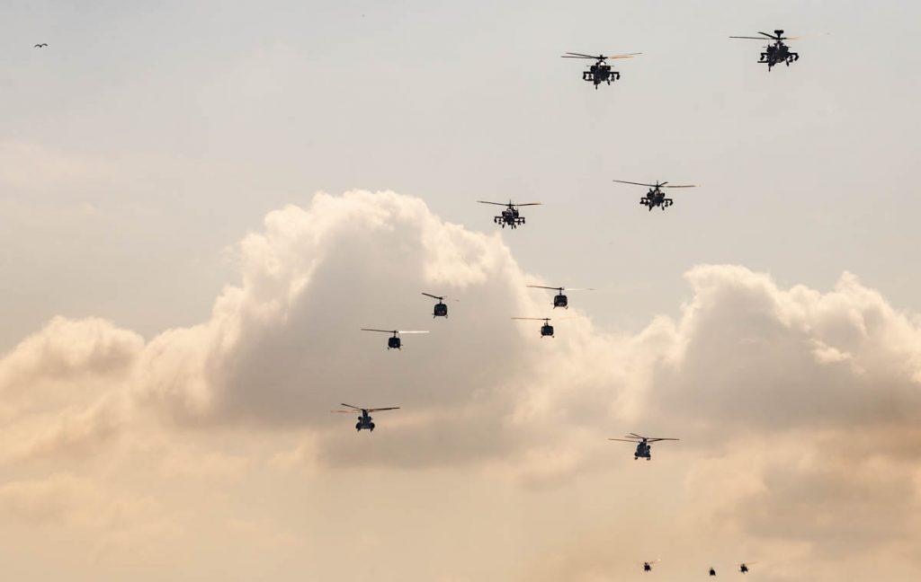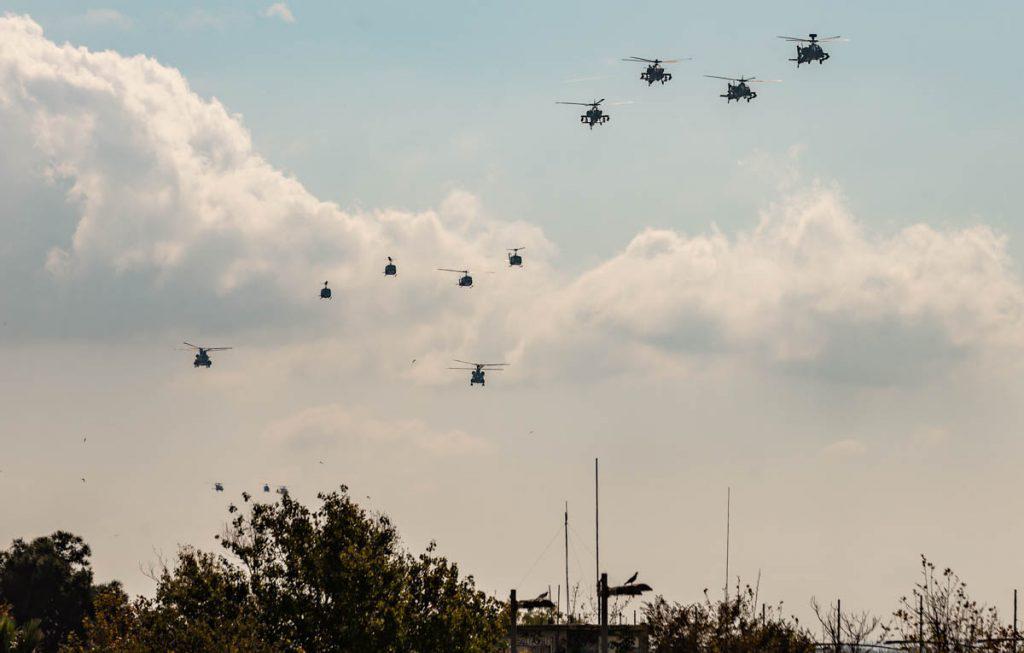 Πάνω από την παρέλαση πέταξαν σε σχηματισμό ελικόπτερα, Phantom Mirage, καθώς και F16.