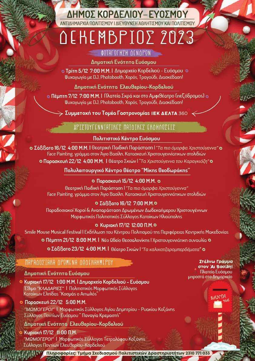 Το αναλυτικό πρόγραμμα των χριστουγεννιάτικων εκδηλώσεων στο δήμο Θέρμης έχει ως εξής: