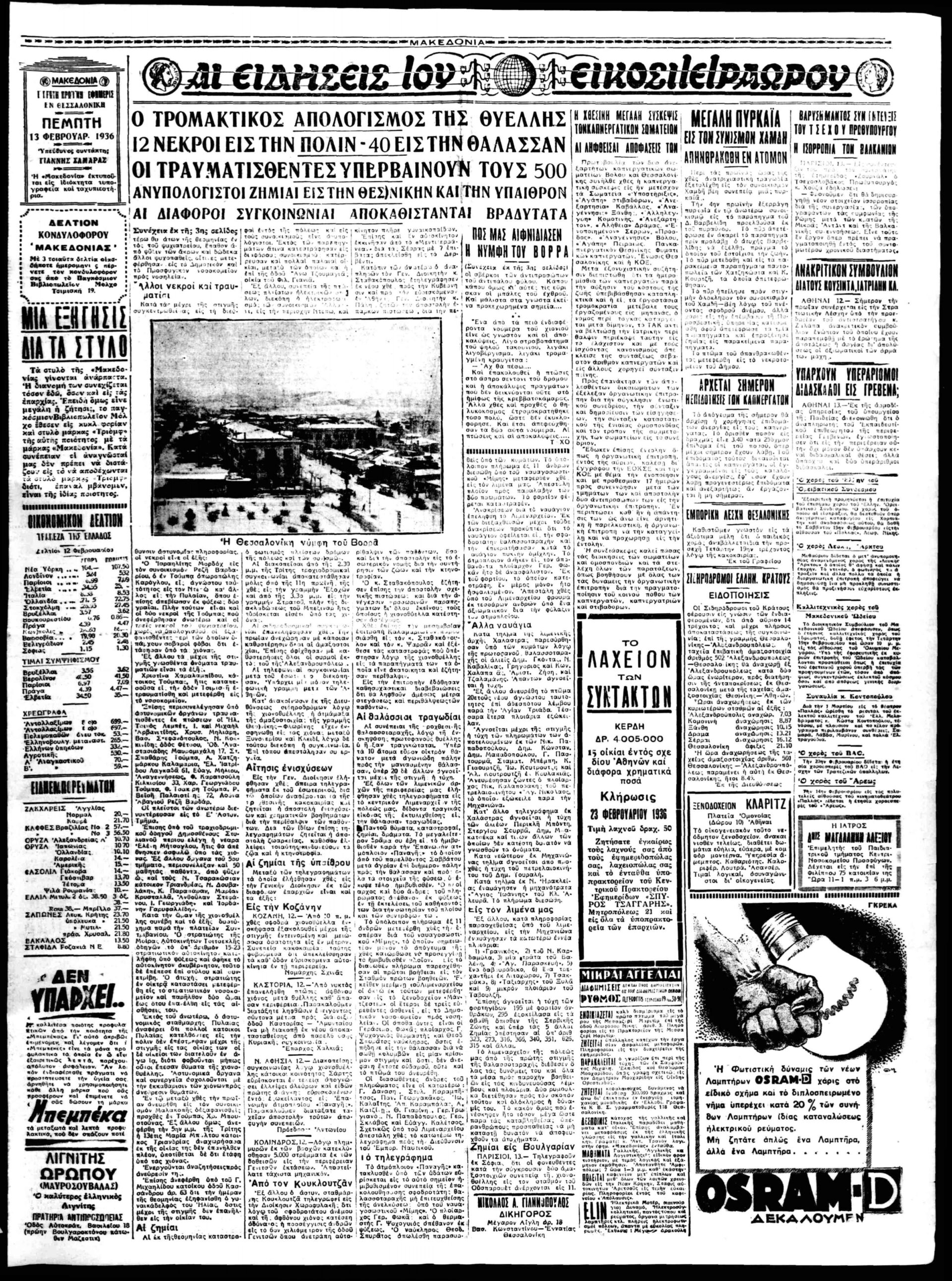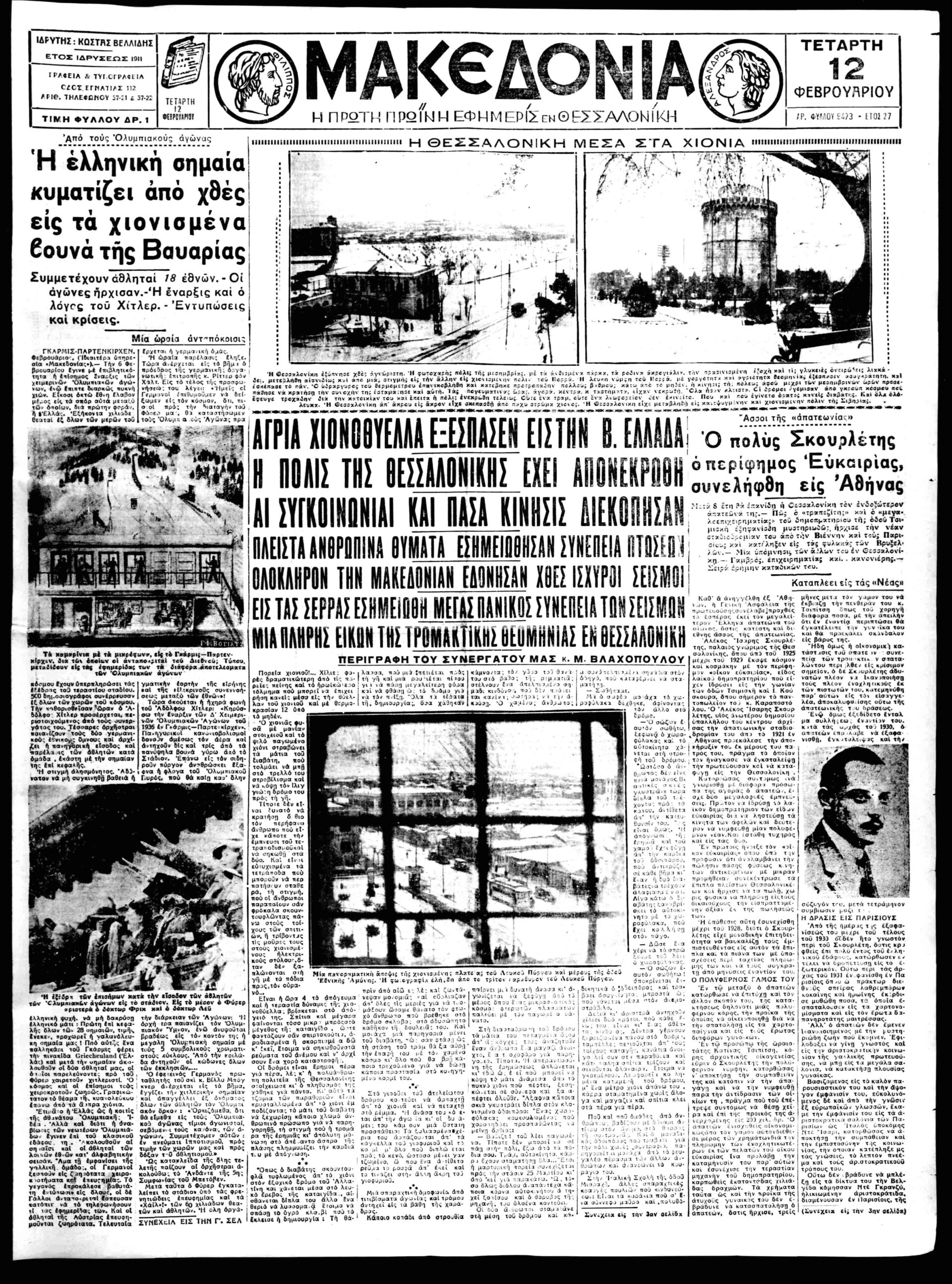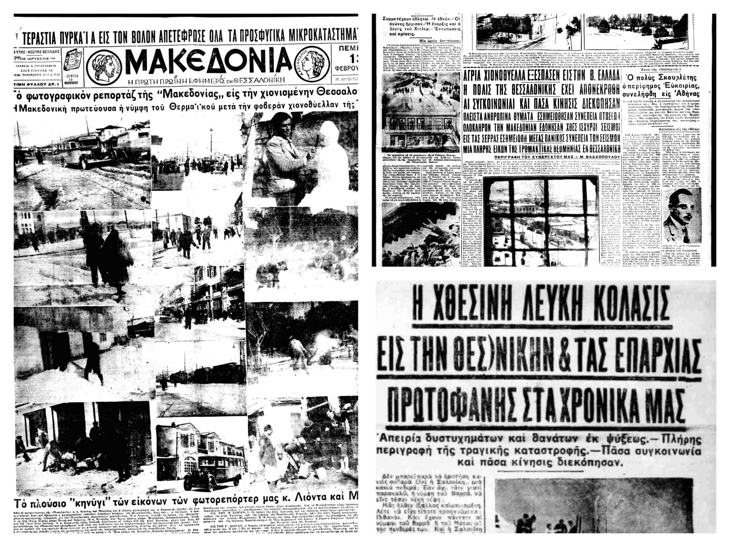 «Πρωτοφανής χιονοθύελλα μετέβαλεν εις αληθινήν κόλασιν επί ένα 24ωρον την Θεσσαλονίκη. Η πόλις ενεκρώθει από της 2ας απογευματινής ώρας» αναφέρουν τα πρώτα ρεπορτάζ στις εφημερίδες της εποχής.