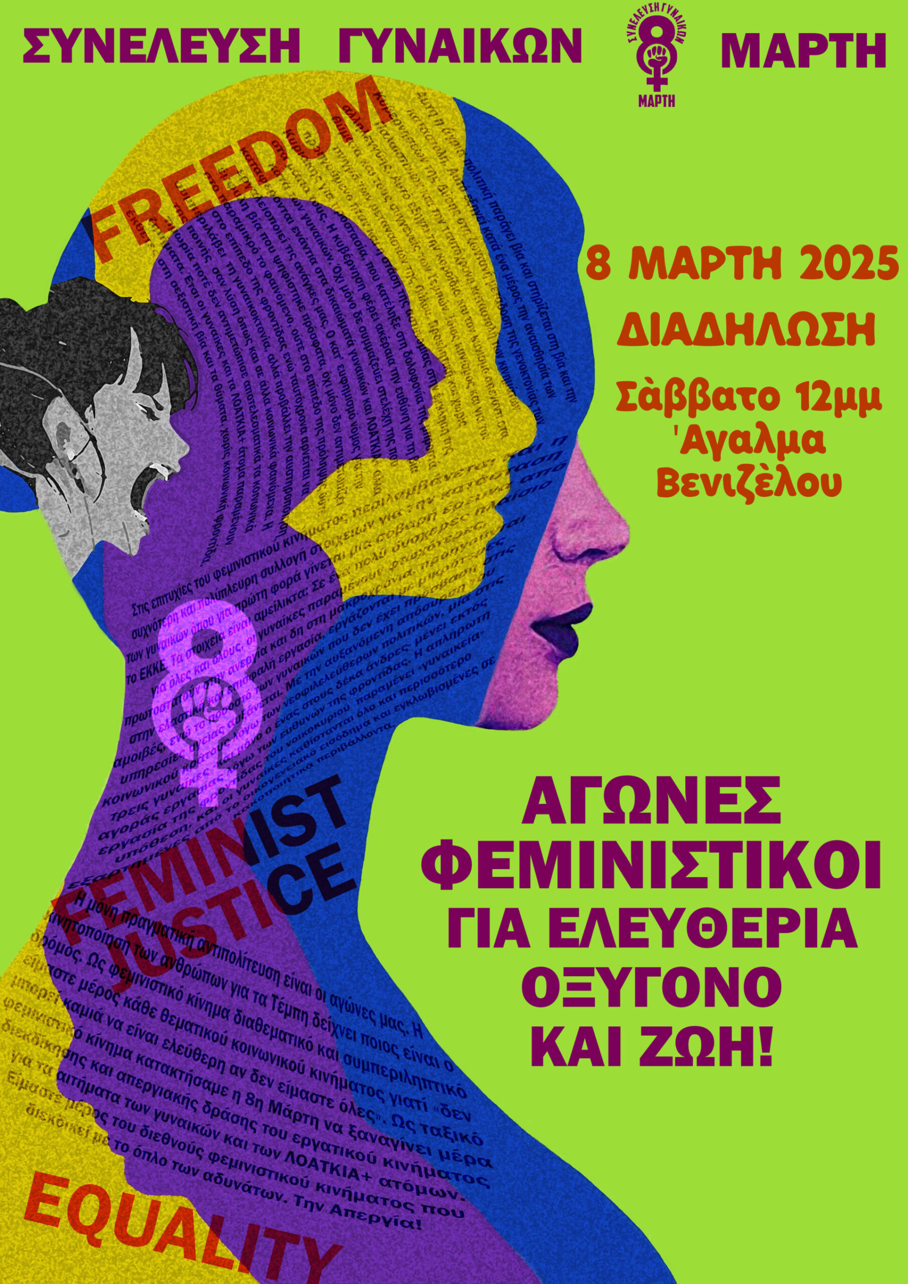 8 Μάρτη 2025: ΦΕΜΙΝΙΣΤΙΚΗ ΔΙΑΔΗΛΩΣΗ – ΑΓΩΝΕΣ ΦΕΜΙΝΙΣΤΙΚΟΙ ΓΙΑ ΕΛΕΥΘΕΡΙΑ, ΟΞΥΓΟΝΟ ΚΑΙ ΖΩΗ!