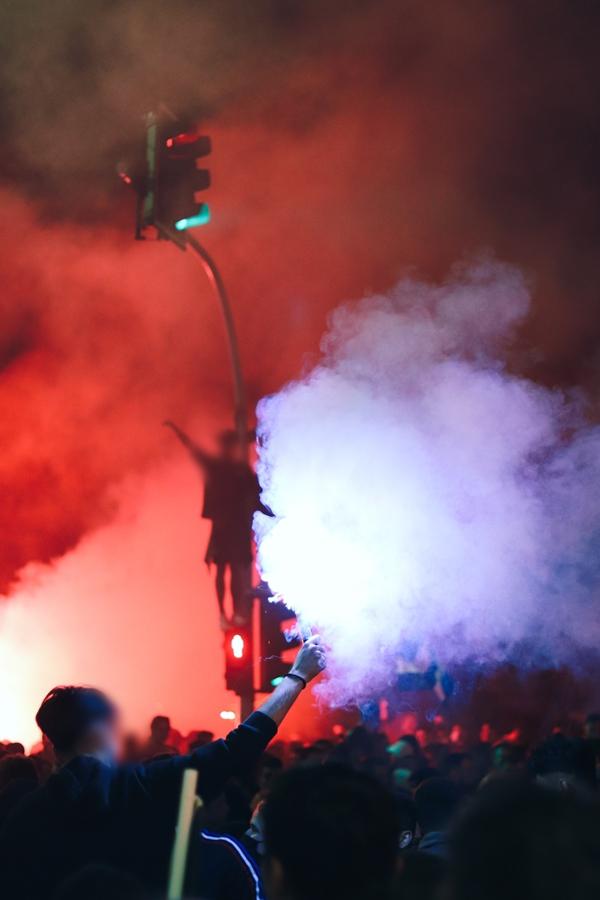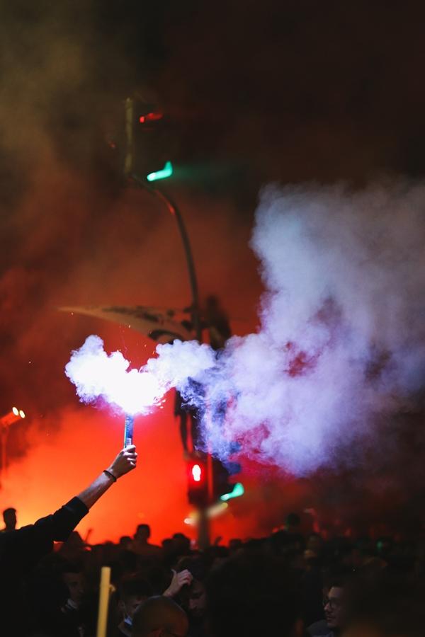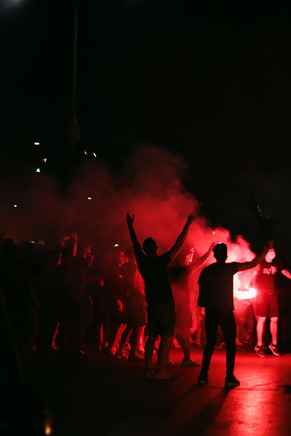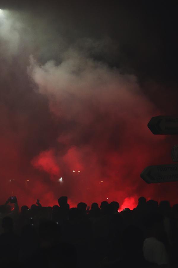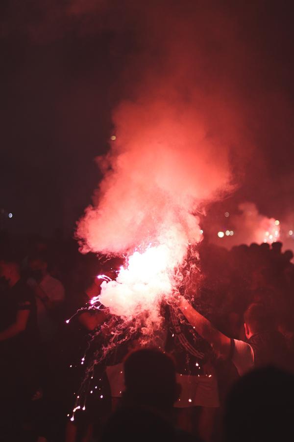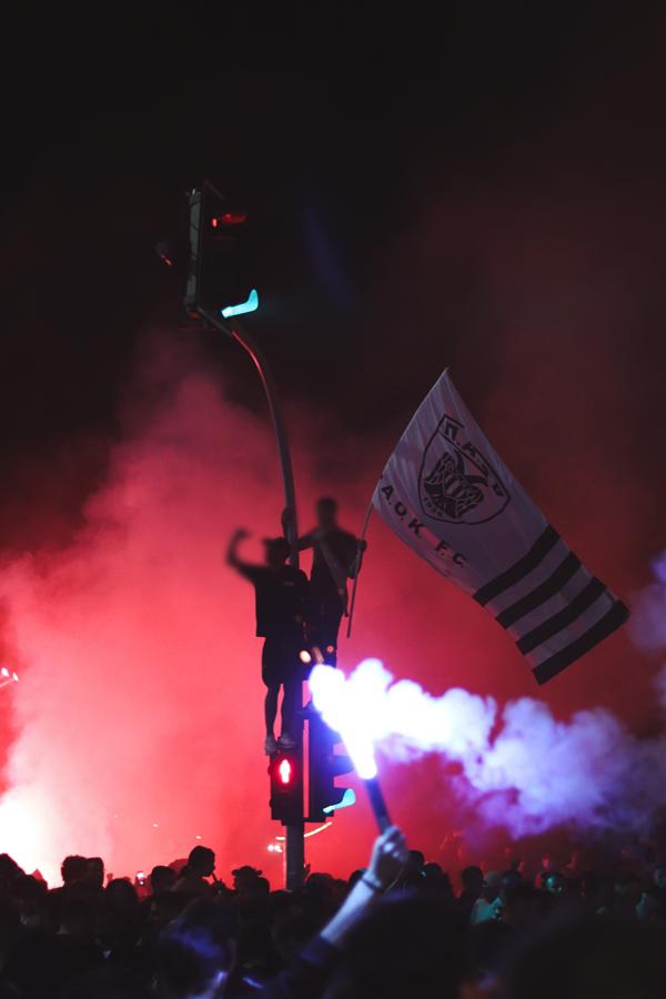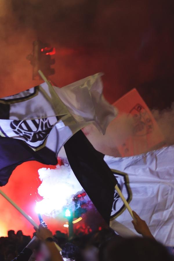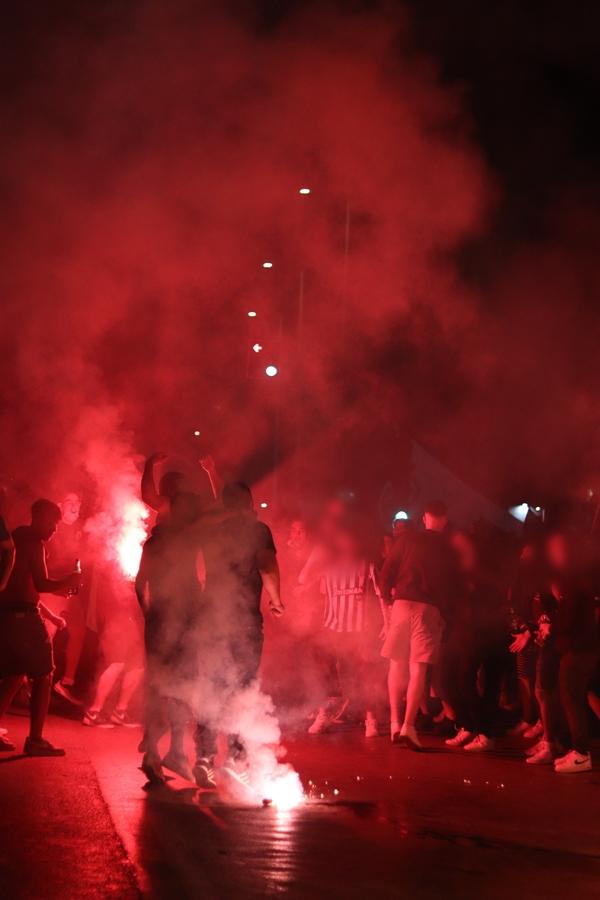 Οι φίλαθλοι του Δικεφάλου βρέθηκαν στους δρόμους παρά την απαγόρευση κυκλοφορίας που ισχύει από 00.30 μέχρι τις 05.00, στήνοντας ένα ξέφρενο πάρτι για την επιτυχία της ομάδας τους.