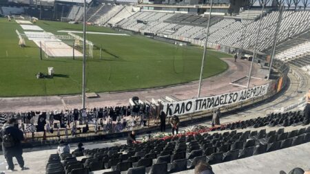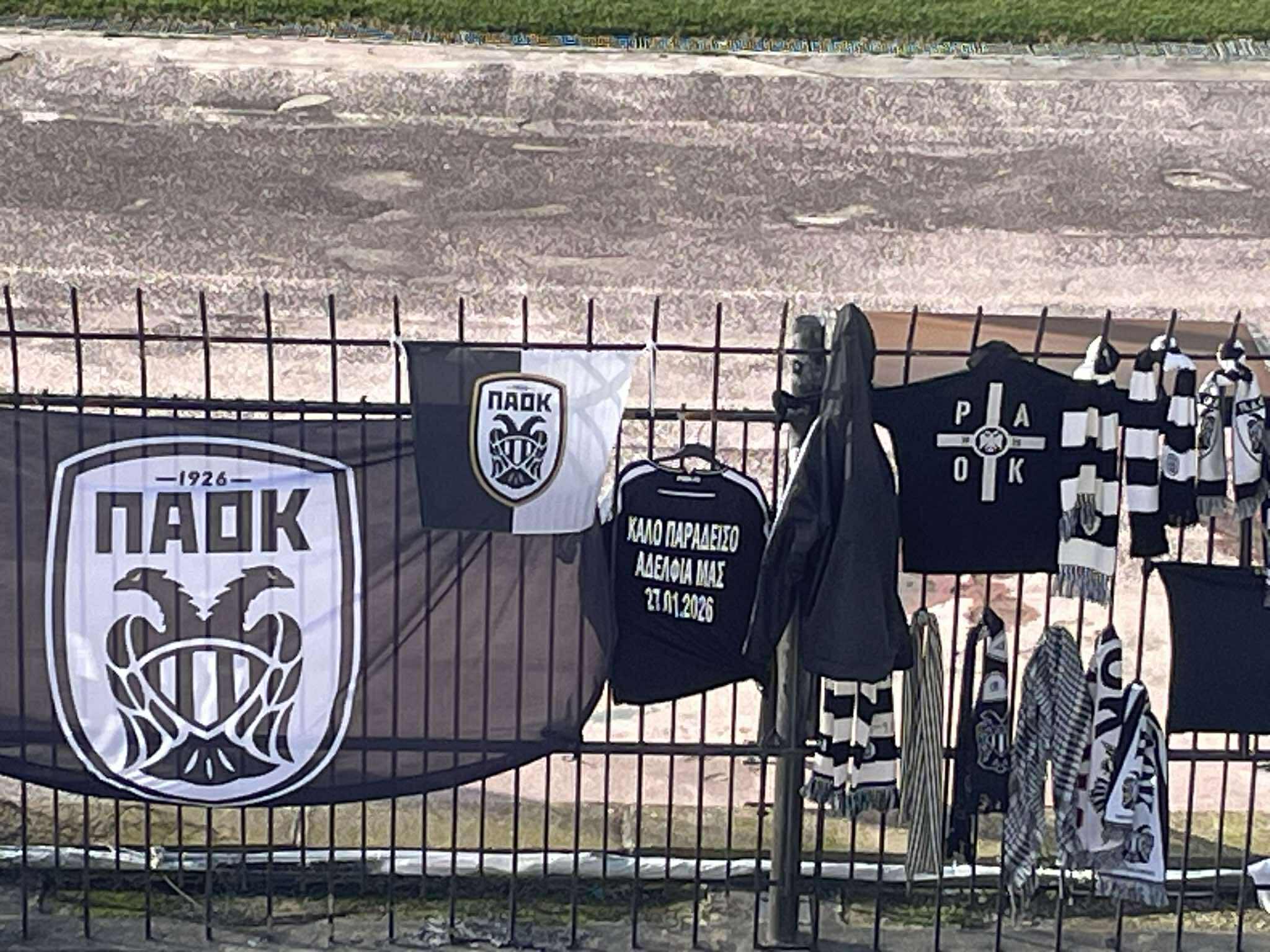 ΠΑΟΚ: Βουβός πόνος στην Τούμπα – Γεμάτη με κασκόλ, λουλούδια και κεριά η Θύρα 4