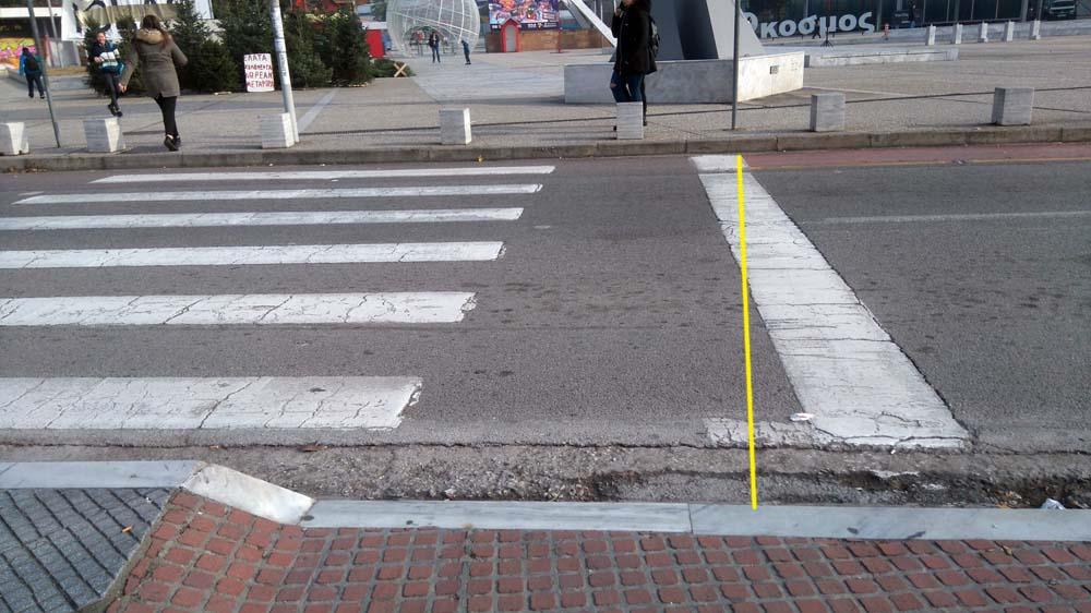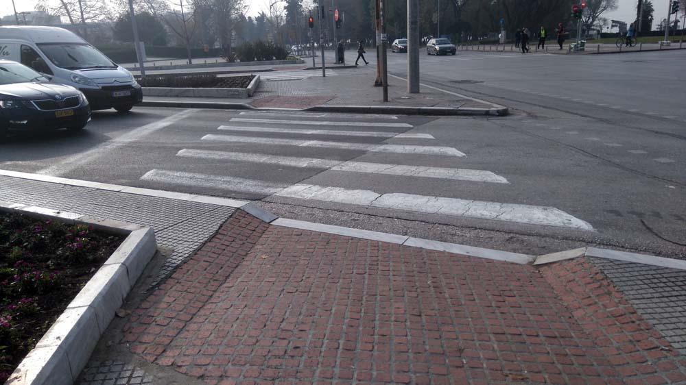 Κατεβαίνει, λοιπόν μια μάνα με το παιδί της στο καρότσι από το πεζοδρόμιο της Αγγελάκη, δίπλα στη Δ.Ε.Θ. και αφού καταφέρει να περάσει σώα και ασφαλής ανάμεσα από τα τραπεζοκαθίσματα και τη λωρίδα για τα ποδήλατα, φτάνει στο δρόμο και θέλοντας να πάει προς το Αρχαιολογικό Μουσείο αντικρίζει μπροστά της μια διάβαση, που δεν έχει ράμπα. Το μόνο που υπάρχει είναι η ράμπα για τα αυτοκίνητα που μπαίνουν στην Έκθεση, και φυσικά δεν έχει τη σήμανση για διάβαση πεζών.
