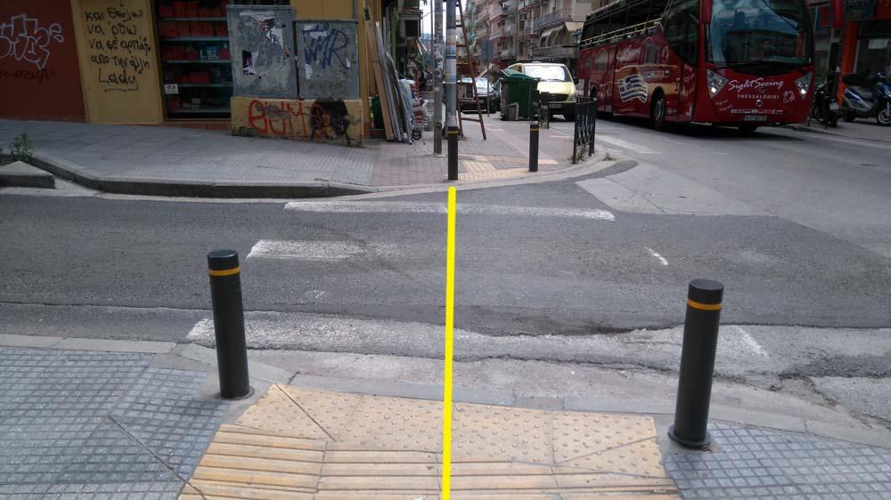 Στη διασταύρωση της Κασσάνδρου με την Ιουλιανού έχει στηθεί μια παγίδα για τους τυφλούς. Μήπως κάποιος από το αρχιτεκτονικό του Δήμου Θεσσαλονίκης μισεί τους τυφλούς. Πώς να εξηγήσει κανείς μια λωρίδα τυφλών που οδηγεί ακριβώς πάνω στον στύλο του φαναριού