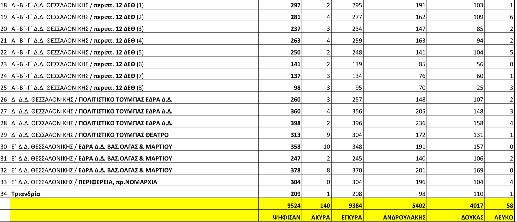 Όσον αφορά την Α’ Θεσσαλονίκης, με καταγεγραμμένο το 100% της ενσωμάτωσης στα εκλογικά κέντρα, τα αποτελέσματα έχουν ως εξής: