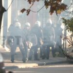 Ομάδα ατόμων με καλυμμένα τα χαρακτηριστικά κινήθηκε, από την οδό 26ης Οκτωβρίου, προς την είσοδο των Δικαστηρίων, εκσφενδονίζοντας αντικείμενα σε άτομα που βρίσκονταν στα σκαλιά του Μεγάρου.