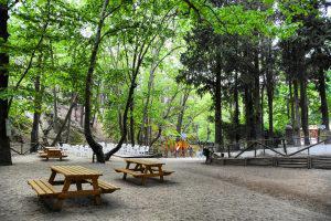 Λόγος για να ξεμακρύνεις στο βουνό, το εντυπωσιακό πετρόκτιστο κτίσμα που υψώνεται στην άκρη του δάσους με τον Θερμαϊκό πιάτο. Ένα πραγματικό forest bar-resto που θα σας θυμίσει τα υπέροχα σαλέ που έχετε κατά καιρούς θαυμάσει σε ψηλά βουνά αλλά ταυτόχρονα θα σας κρατά σταθερά μπροστά σας τον ομφάλιο λώρο με την πόλη που απλώνεται στα πόδια σας. Από νωρίς το πρωί για εντυπωσιακά brunch και πρωινά πλάι στο δάσος για να διαβάσεις ένα βιβλίο και να χαλαρώσεις, για καφέ και χυμό, να γευματίσεις και να δειπνήσεις εξαιρετικά ή να απολαύσεις ποτό με θέα τρομερή. Ιδανικό για φαμίλιες με άπειρο χώρο να παίξουν τα παιδιά και συ να χαλαρώσεις. Και φυσικά για ρομαντικές ψυχές που θα μείνουν άφωνες με το θέαμα του ορίζοντα. Τον απολαμβάνεις από αυλές, βεράντες και επίπεδα.