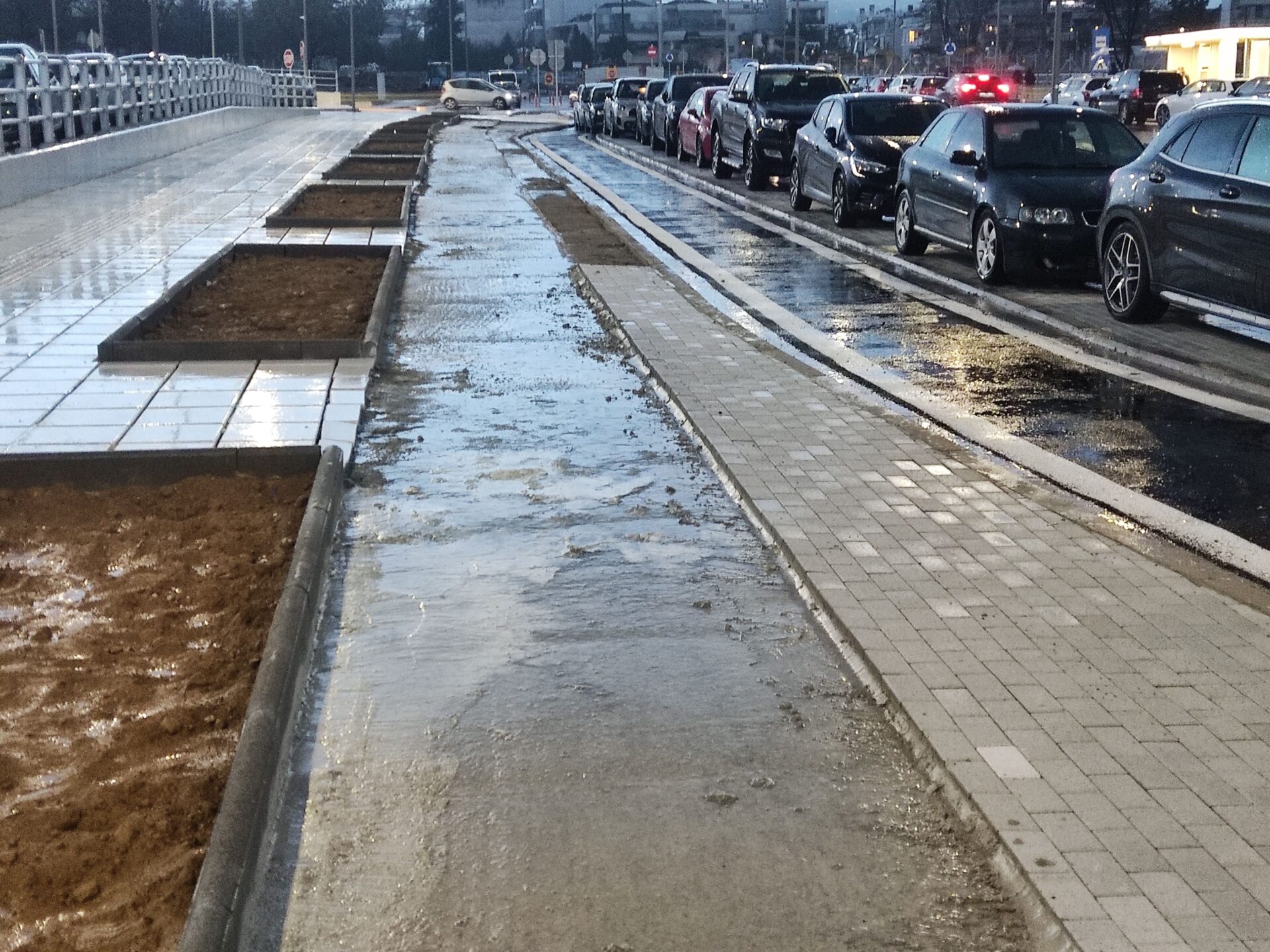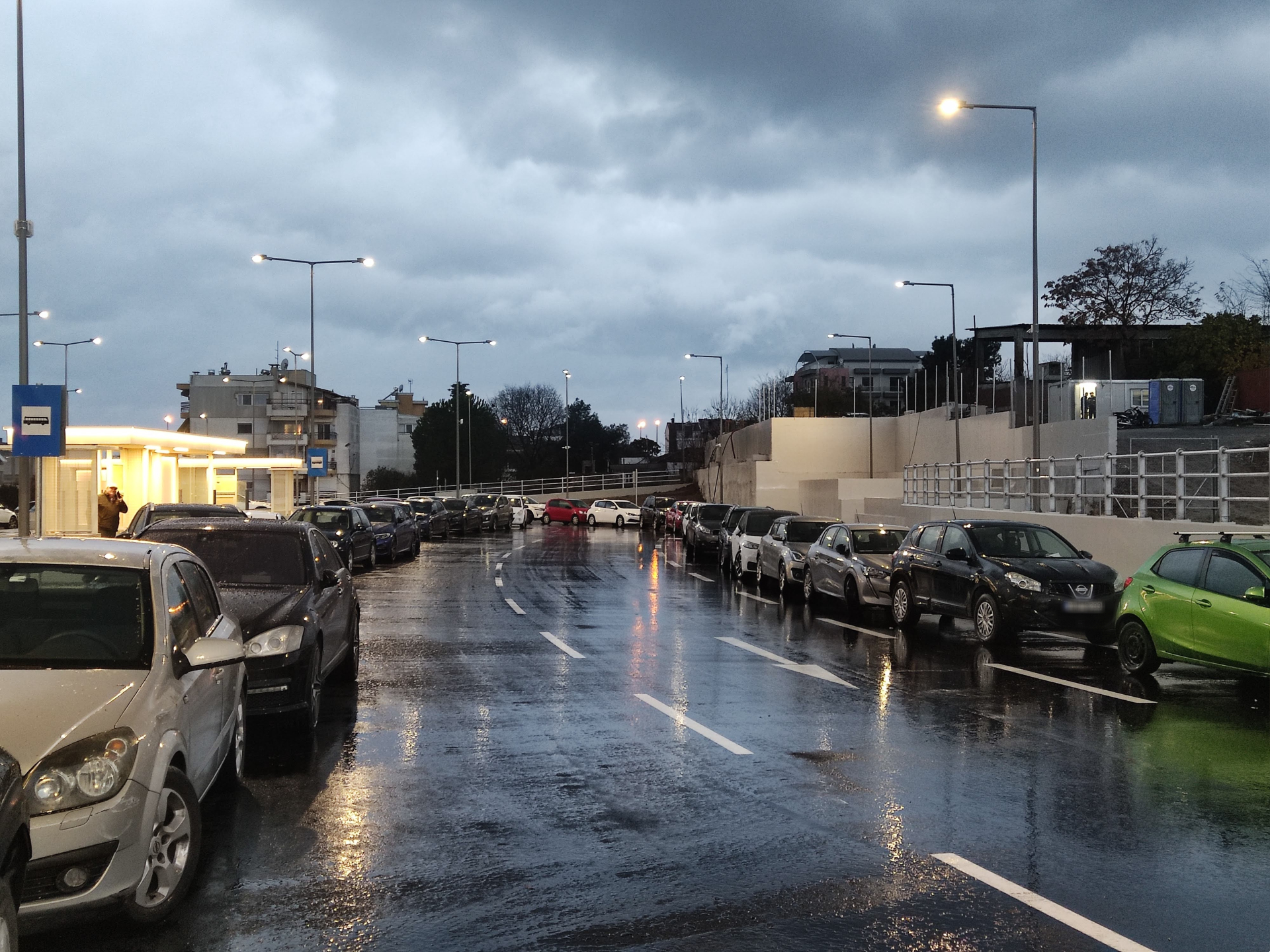 Ο σταθμός μετεπιβίβασης είναι μεν εντυπωσιακός, δεδομένης της ταχύτητας που χτίστηκε, όμως πλήρως λειτουργικός δεν είναι. Η ολοκαίνουργια άσφαλτος και οι καλοφωτισμένες στάσεις για τα λεωφορεία που θα τερματίζουν εδώ συνυπάρχουν με πλάκες πεζοδρομίου χωρίς αρμό, ποδηλατοδρόμους στα μπετά ακόμα και, κυρίως, παντελή έλλειψη θέσεων στάθμευσης. Τι κι αν υπάρχουν πινακίδες απαγόρευσης; Τα αυτοκίνητα κατακλύζουν το χώρο που κανονικά προορίζεται για λεωφορεία, αφού δεν έχουν και εναλλακτική. Η βόρεια είσοδος δεν είναι έτοιμη ακόμα και όλα τα οχήματα κάνουν κύκλο, επιβαρύνοντας ακόμα περισσότερο. Περιμένουμε αυτή τουλάχιστον να έχει ολοκληρωθεί μέσα στο Δεκέμβριο.