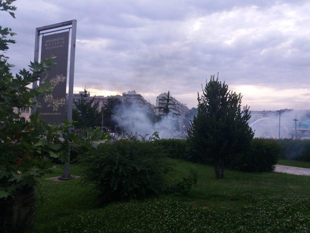 Η ατμόσφαιρα στην περιοχή γύρω από τη ΔΕΘ ήταν για πολύ ώρα αποπνικτική από την εκτεταμένη χρήση χημικών.