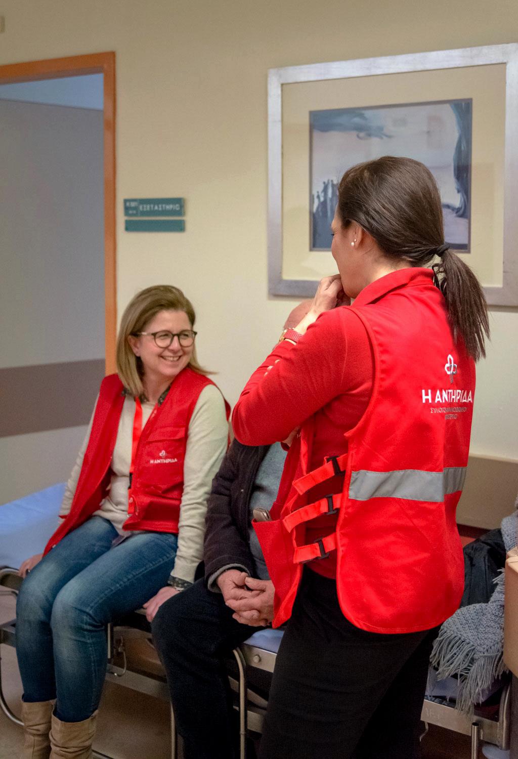 “Υπάρχει πάρα πολλή αξιοπρέπεια”, σημειώνει η Λιάνα. “Το έχω δει από την πρώτη στιγμή, από την πρώτη συγκέντρωση γνωριμίας, δύο πράγματα τα κράτησα και ήταν ακριβώς αυτό που μου έκανε το ‘κλικ’ για να επιλέξω την Αντηρίδα. Το ξεκαθάρισμα, από την αρχή, των ορίων. Δηλαδή ότι δεν εμπλεκόμαστε και δεν αντικαθιστούμε την δουλειά του νοσηλευτή, του εργαζόμενου στο νοσοκομείο. Αυτό ήταν ξεκάθαρο από την αρχή και για μένα ήταν πάρα πολύ σημαντικό. Επίσης, ότι απαράβατος όρος, “νόμος”, δεν χρησιμοποιούμε την ιδιότητα του εθελοντή για προσωπικούς λόγους υγείας ή οτιδήποτε άλλο στον χώρο. Από την στιγμή που το άκουσα αυτό, για μένα ήταν πάρα πολύ σημαντικό αυτό. Υπάρχουν όροι οι οποίοι είναι απαράβατοι”.