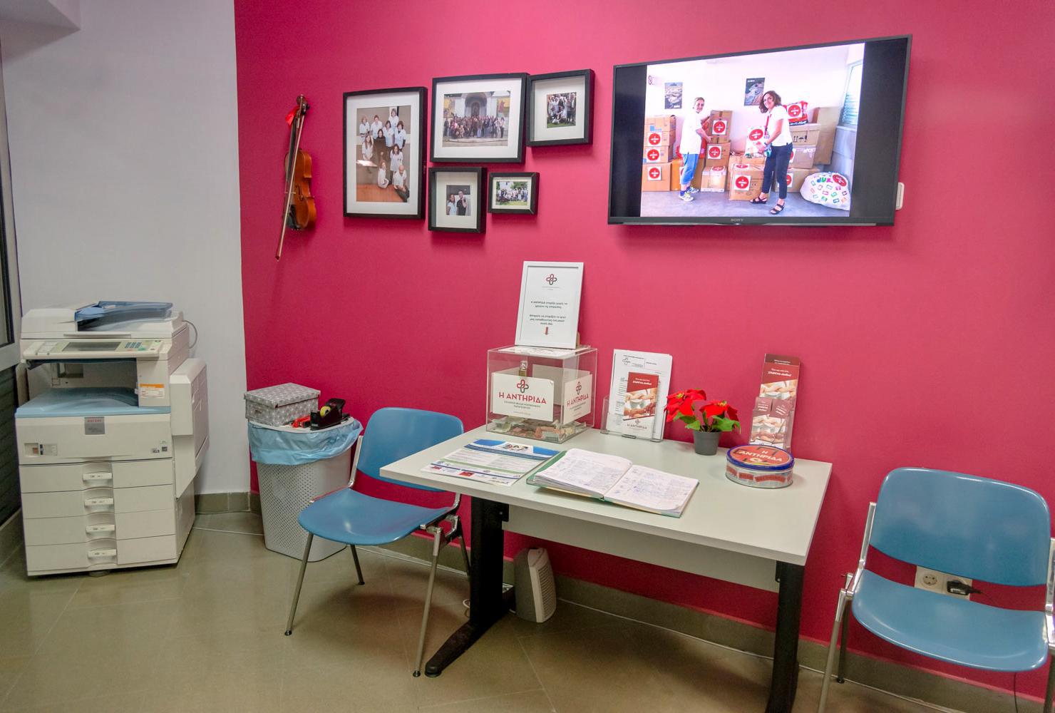 Οι υπηρεσίες που παρέχουν πολλές και πολύτιμες, όπως τα άτομα της ομάδας. Αρχικά, όπως σημειώνει η κ. Δελχανίδου, η Αντηρίδα είναι εφοδιασμένη με 25 αμαξίδια με τα οποία εξυπηρετεί συνεχώς ασθενείς, είτε πρόκειται για άτομα που θα έρθουν να τα ζητήσουν, είτε πρόκειται για κάποιον που θα εντοπίσουν εθελοντές να βρίσκεται σε ανάγκη μεταφοράς και θα σπεύσουν να τον εξυπηρετήσουν. Αυτό το παρατηρείς άλλωστε αν μείνεις έστω και λίγη ώρα στο πόστο των γραφείων, όπου θα δεις συνέχεια να καταφθάνουν άτομα για να προμηθευτούν αμαξίδιο. Ειδικά τις πρωινές ώρες που τρέχουν τα εξωτερικά ιατρεία, η συγκεκριμένη υπηρεσία είναι συνεχόμενη.