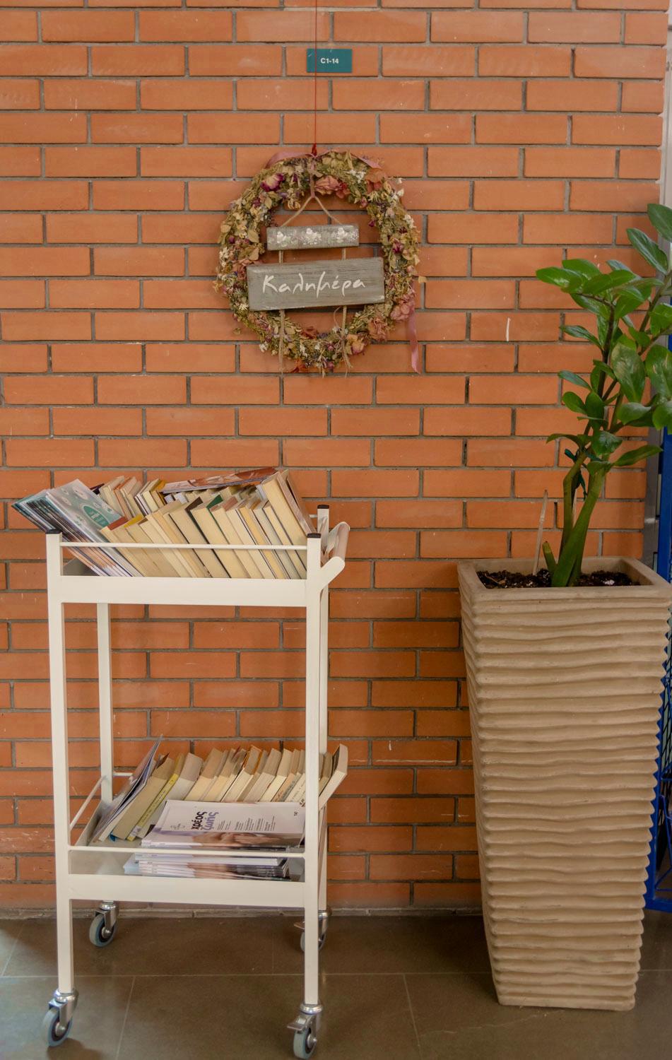 Όπως σημειώνει η Ιωάννα Γαλάζιου, εθελόντρια της Αντηρίδας εδώ και 1,5 χρόνο, “Η Δανειστική Βιβλιοθήκη είναι μια καινούρια δράση της Αντηρίδας, λειτουργεί περίπου έναν χρόνο. Λόγω της μεγάλης προσφοράς βιβλίων έχει δημιουργηθεί βιβλιοθήκη εδώ στον χώρο του νοσοκομείου, όπου μπορούν οι ασθενείς, οι συνοδοί τους και οι εργαζόμενοι να διαλέξουν και να δανειστούν ένα βιβλίο για όσο καιρό είναι εδώ. Υπάρχει επίσης η ανταλλακτική βιβλιοθήκη ‘Think Tank’ που είναι στον προαύλιο χώρο του νοσοκομείου και μπορεί όποιος θέλει να πάει να πάρει ένα βιβλίο να το διαβάσει όση ώρα είναι εδώ, ή και να το πάρει μαζί του. Τα περισσότερα βιβλία είναι δωρεές από φίλους της Αντηρίδας και φροντίζουμε να τοποθετούνται στους χώρους διανομής. Τέλος, υπάρχει και η κινητή βιβλιοθήκη. Επειδή οι δωρεές των βιβλίων ήταν πάρα πολλές, σκεφτήκαμε κι αυτή την δράση με το τροχήλατο που γυρνάει στους χώρους αναμονής του νοσοκομείου, αφήνουμε βιβλία στους συνοδούς, αλλά και σε αυτούς που περιμένουν αποτελέσματα. Μπορούν πάλι αυτό το βιβλίο κι αν τους αρέσει να το πάρουν στο σπίτι τους, αυτό είναι στη δική τους διάθεση”.