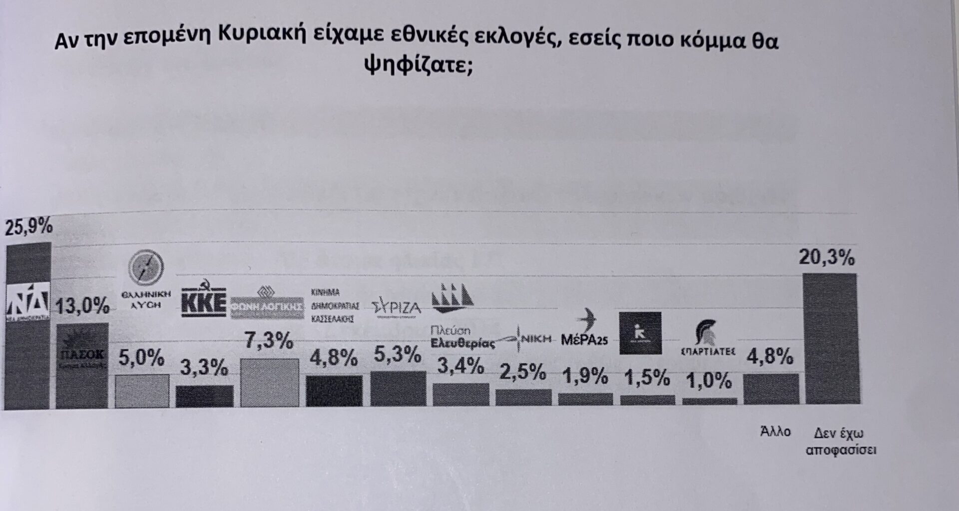 Οι επιλογές «άλλο» και «δεν έχω αποφασίσει» πήραν το 4,8% και το 20,3% των συμμετεχόντων.