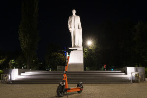 Που να ήξερε ο Καραμανλής, το άγαλμα καλέ, ότι δεκάδες ηλεκτρικά πατίνια θα ήταν αφημένα εκεί μπροστά του. Δεκάδες και τουλάχιστον τρία διαφορετικά είδη από δαύτα. Δεν μου κάνει εντύπωση έχει πέραση. Πιτσιρίκια που παραβγαίνουν, όποιος πατήσει πρώτος κάποιον. Νεαρά ζευγαράκια, η κοπέλα να αγκαλιάζει το αγόρι από πίσω, ευκαιρία για ψιθύρισμα στο αυτί. Κι ένας πατέρας με την κόρη του, εκείνος πίσω αυτή μπρος. Με την ελπίδα πως όταν έρθει η ώρα η κόρη να κρατήσει το τιμόνι. Ακόμη λίγο.