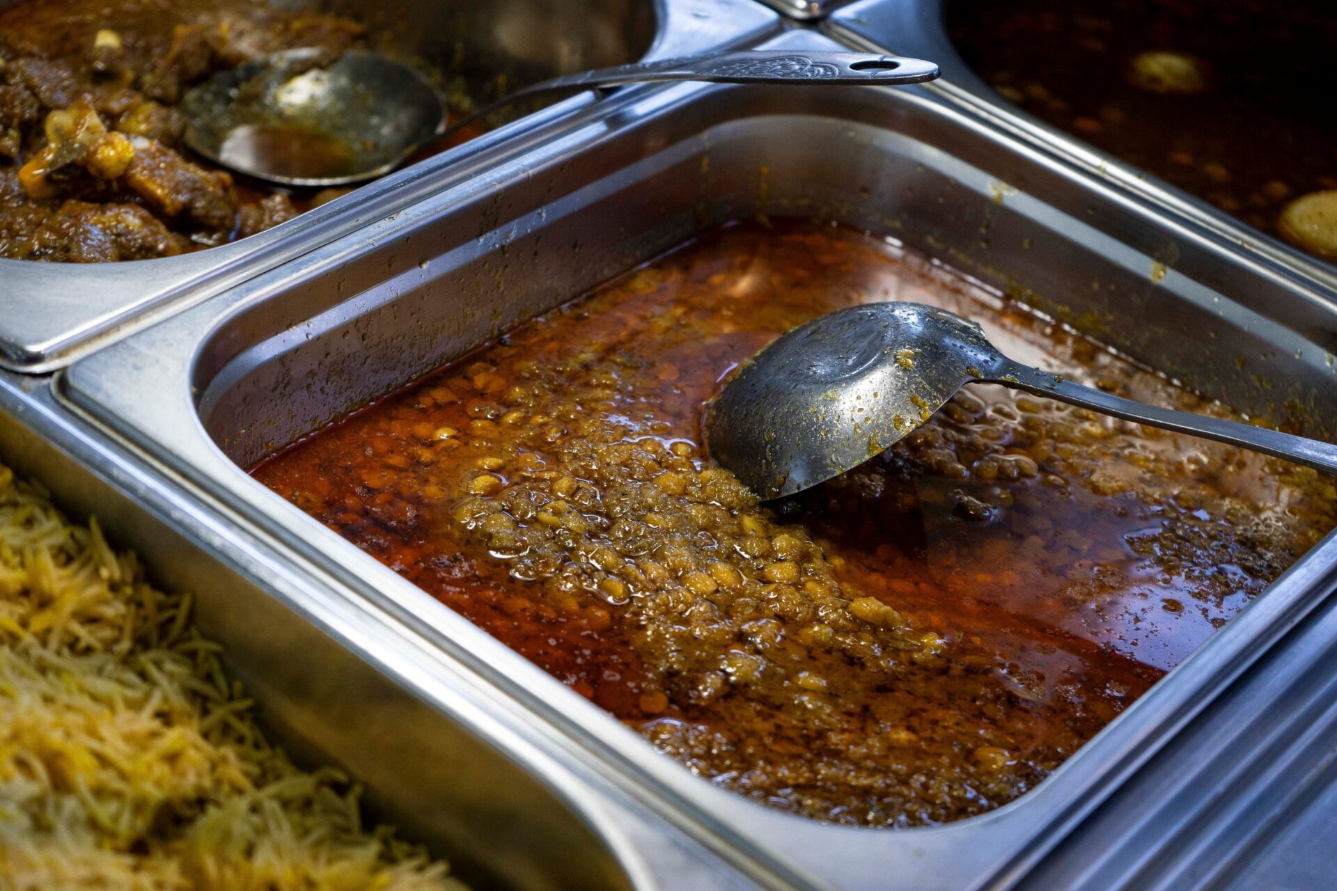 Ρυζι με κεμπάπ, τουρλού, γεμιστά, ποικιλίες μαγειρευτών κρεατικών (εκτός χοιρινού εννοείται), σαλάτες, μπριάνι κοτόπουλο, μαγειρευτά κατσαρόλας όλα δίνουν την αίσθηση σπιτικού φαγητού, σ’ενα γεμάτο μαγαζί.